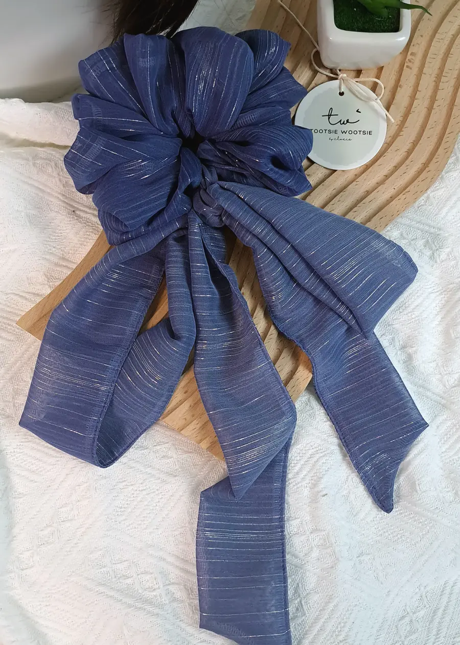 Material: Chiffon Scrunchie Diameter: 15cm Length including tails: 40cm