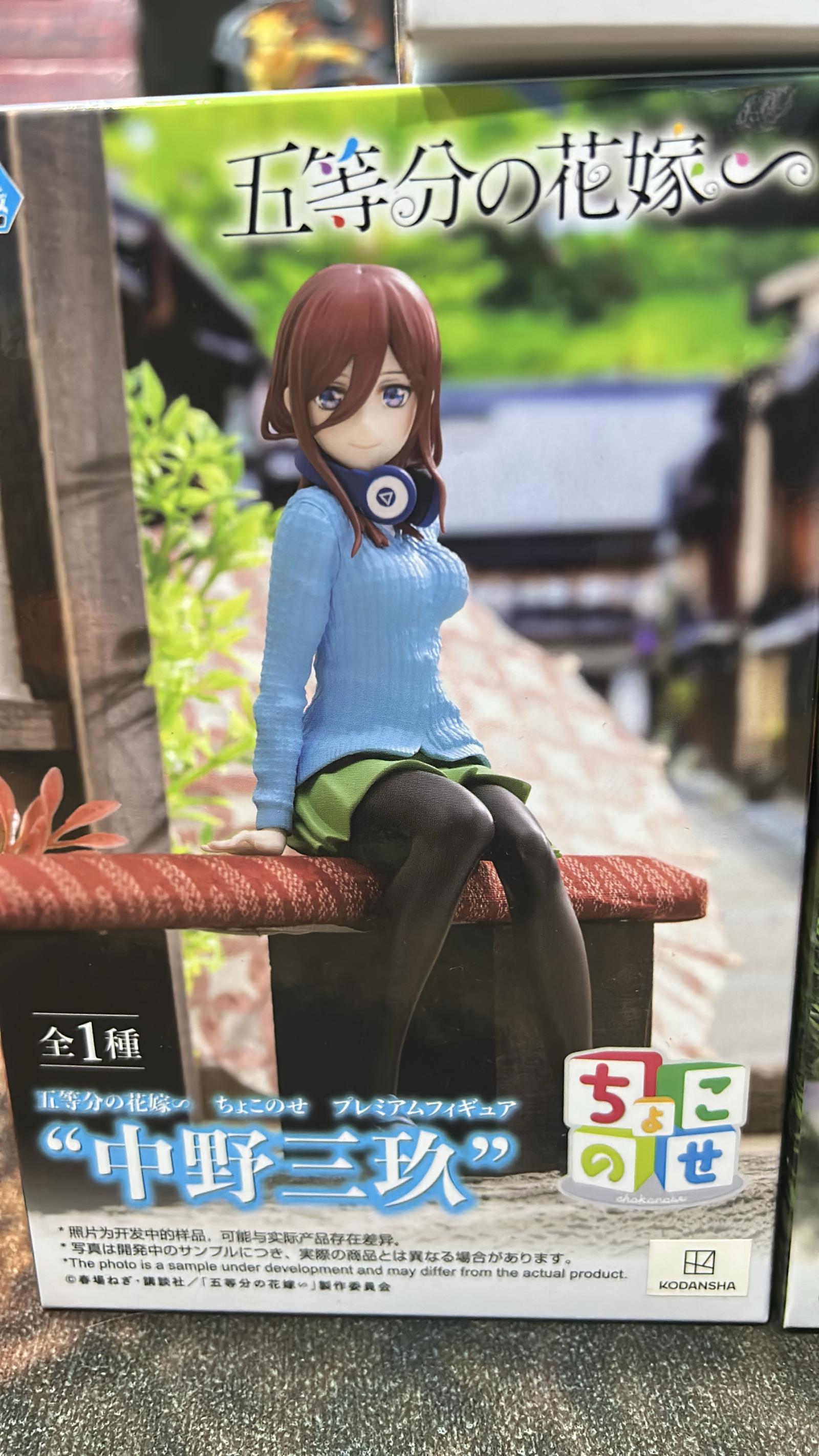 Premium figure of Nakano Miku from the popular anime and manga series 'The Quintessential Quintuplets.' Depicts Miku sitting with her signature blue sweater, green skirt, and headphones. A well-crafted collectible piece by Kodansha, ideal for fans and collectors of anime figures.