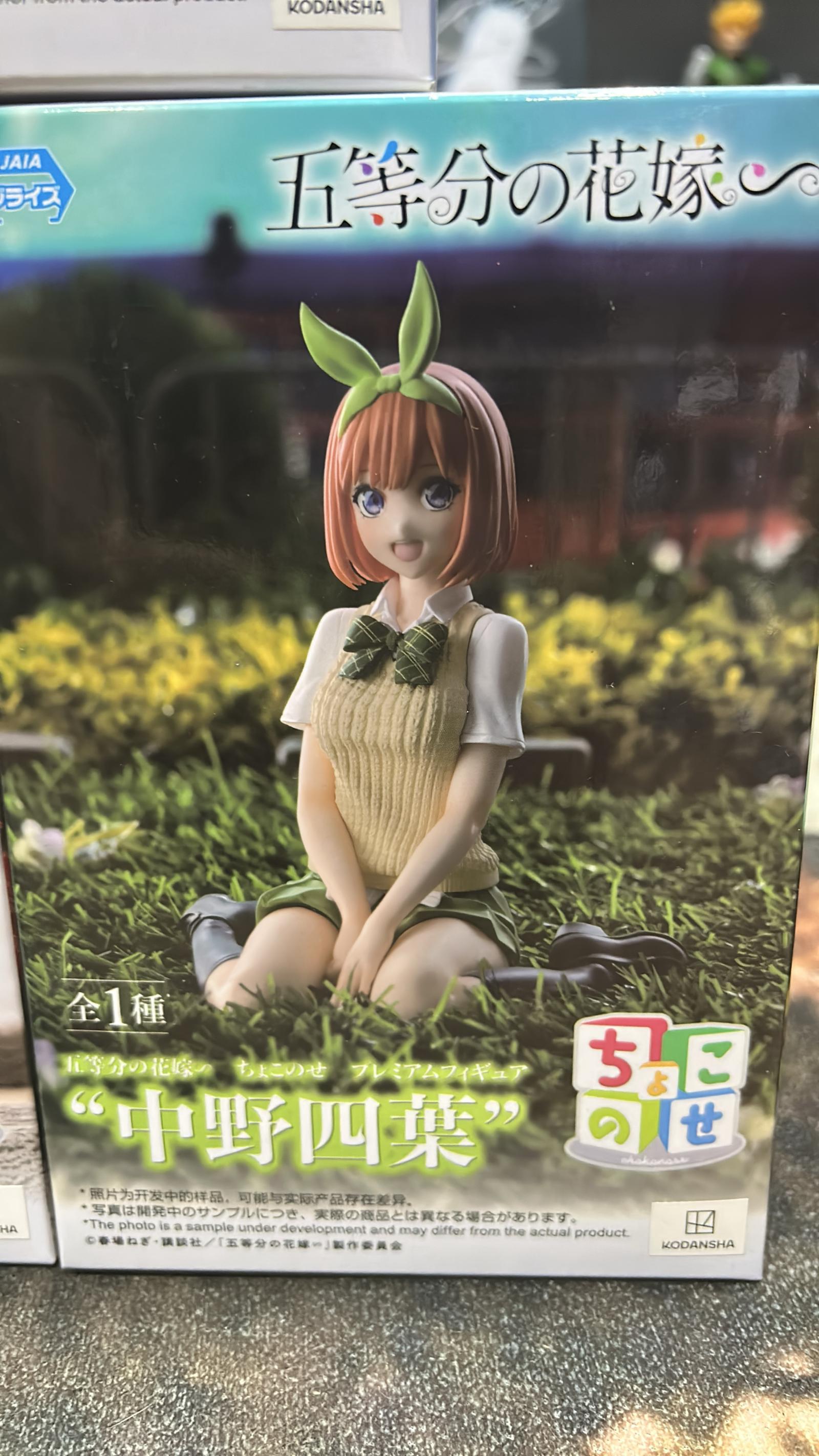 A premium collectible figure of Nakano Yotsuba from the anime series Gotoubun no Hanayome (The Quintessential Quintuplets). The figure showcases Yotsuba in her school uniform sitting on grass, featuring detailed sculpting and painting. A great addition for fans of the series and collectors of anime figures.