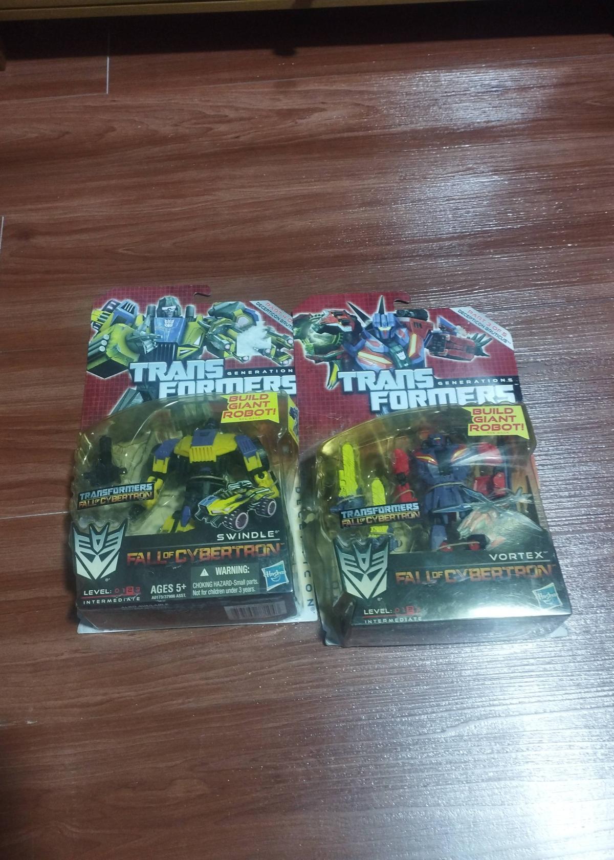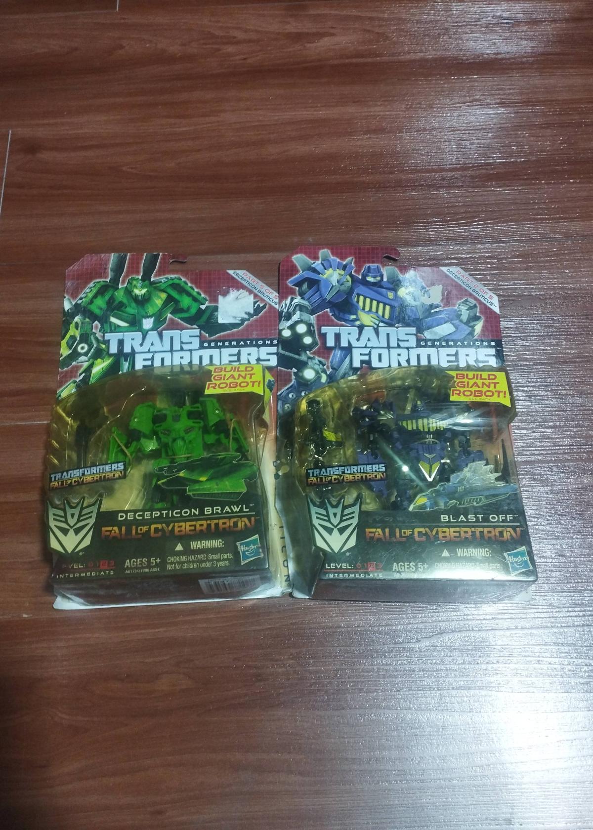 Condition is very good with shelf wear and minor creasing on the packaging corners, making this set excellent for collectors who prioritize unopened items. These figures are notable for their detailed design and articulation, inspired by the Fall of Cybertron storyline, a fan-favorite entry in the Transformers franchise.