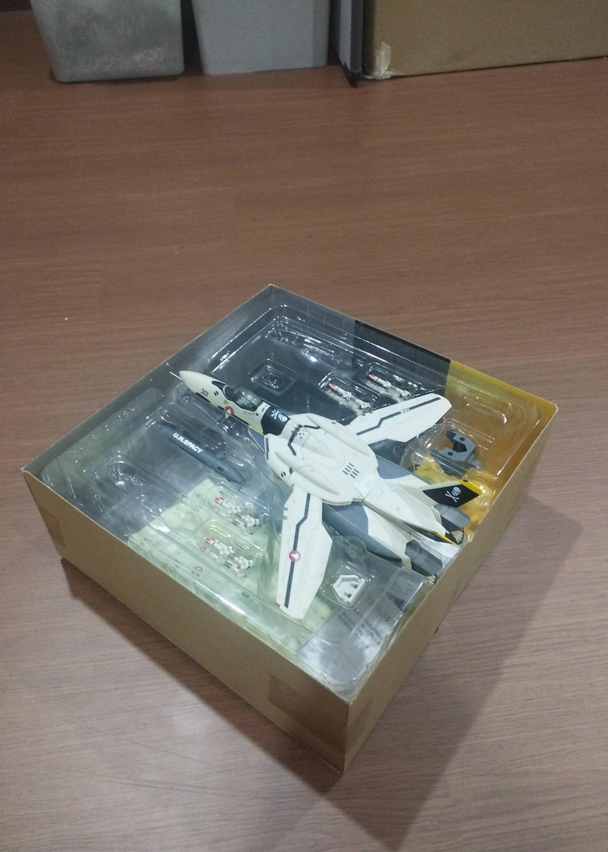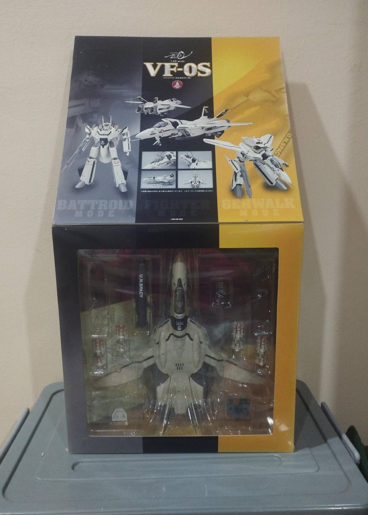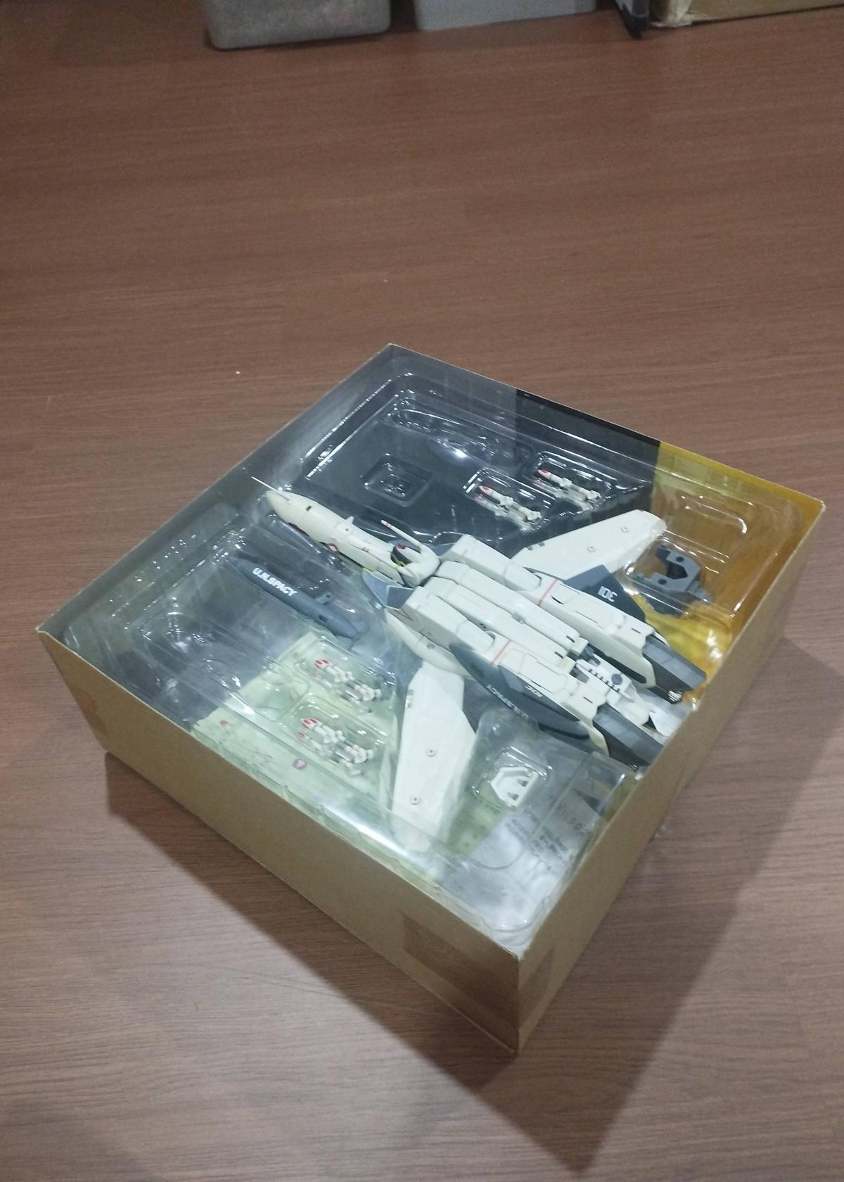 The box shows some corner wear and minor damage but remains sealed and intact, ensuring the figure inside is untouched, although its exact condition has not been verified. Ideal for collectors seeking an authentic and visually impressive piece from Macross Zero, this figure captures the essence of the series' mecha design with quality and precision.