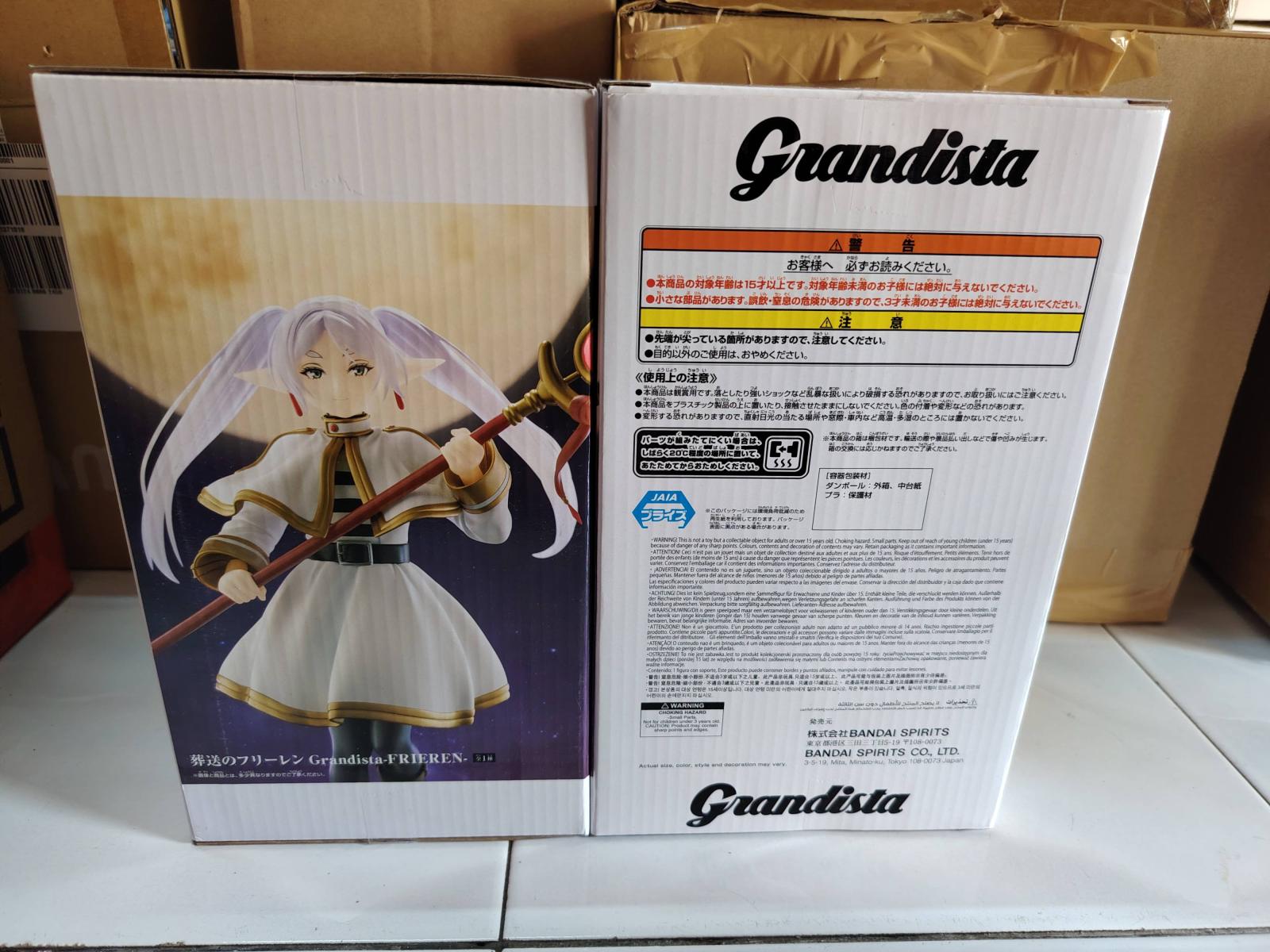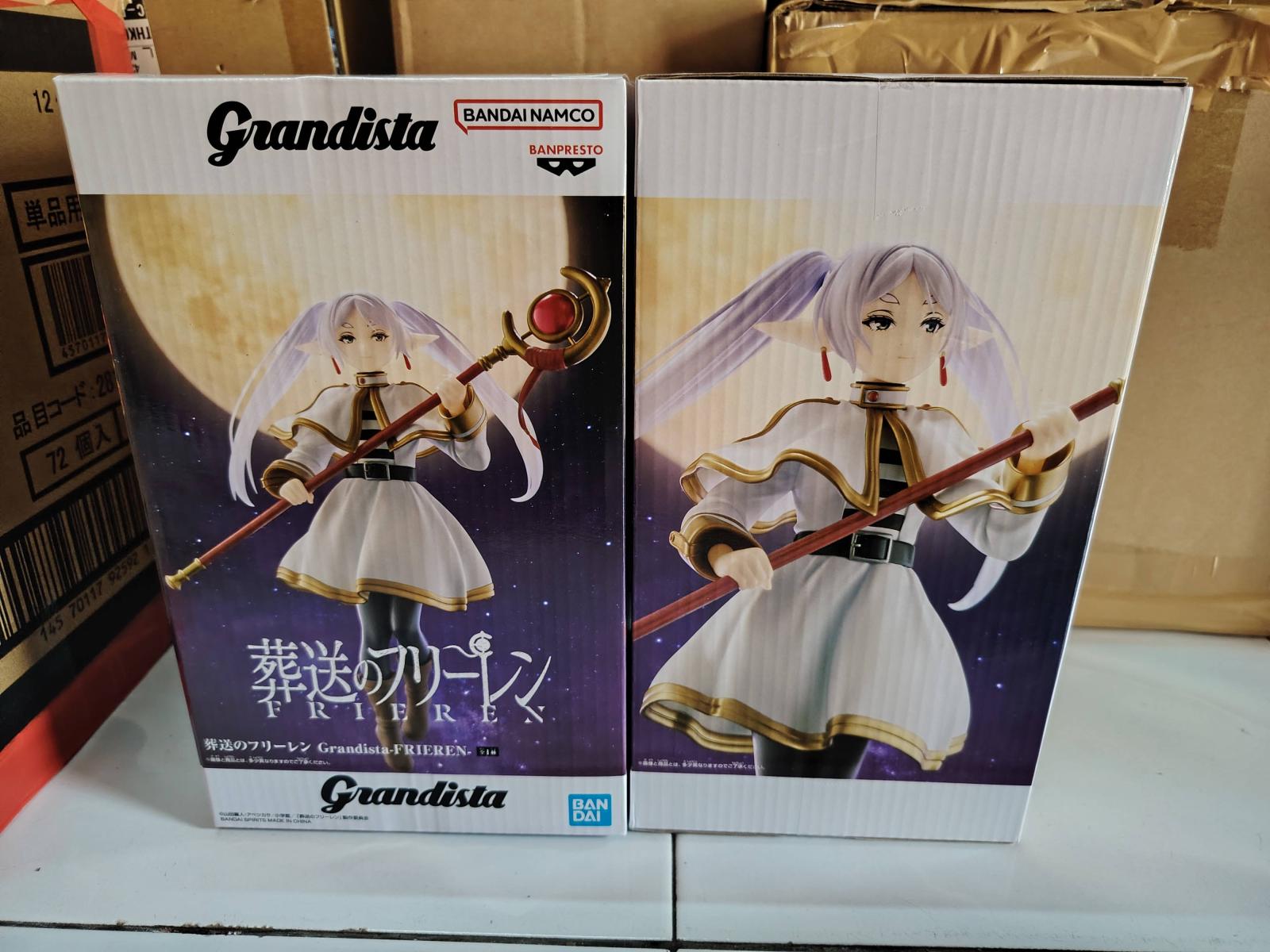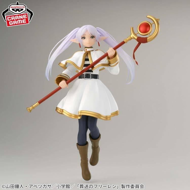 High-quality Banpresto Grandista figure of Frieren from the anime 'Sousou no Frieren'. Detailed sculpt with her signature white and gold outfit, long lavender hair, and magic staff. A perfect collectible for fans of the series.