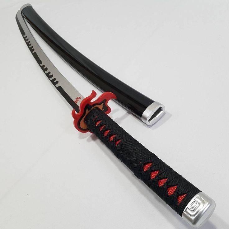A detailed replica of Tanjiro Kamado's Nichirin Blade from the anime Demon Slayer. Features a black blade with flame motif and red-black handle wrap. Comes with matching black sheath. Perfect collectible for anime fans and Demon Slayer enthusiasts. Made from good metal and its tier 2 in our class.