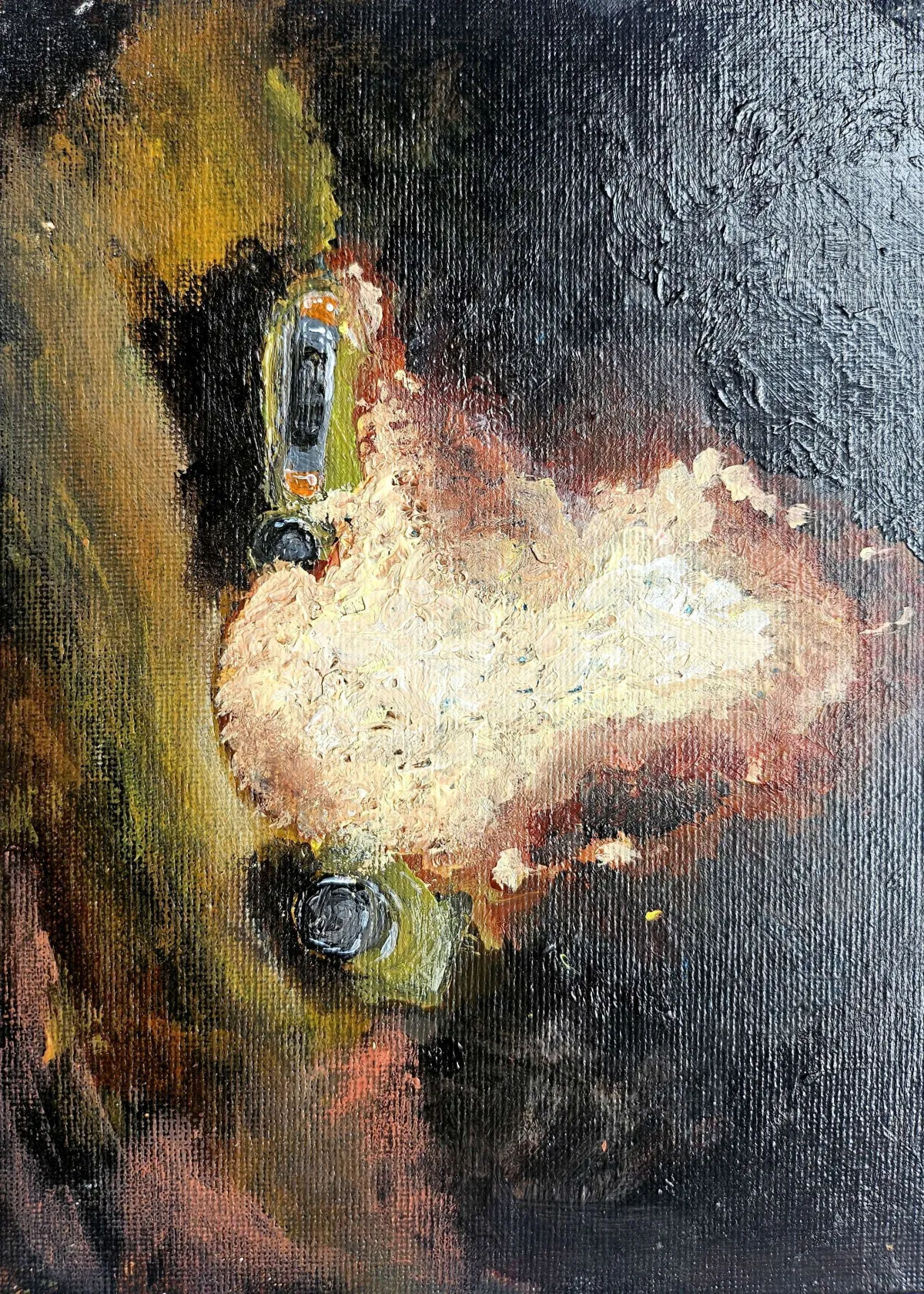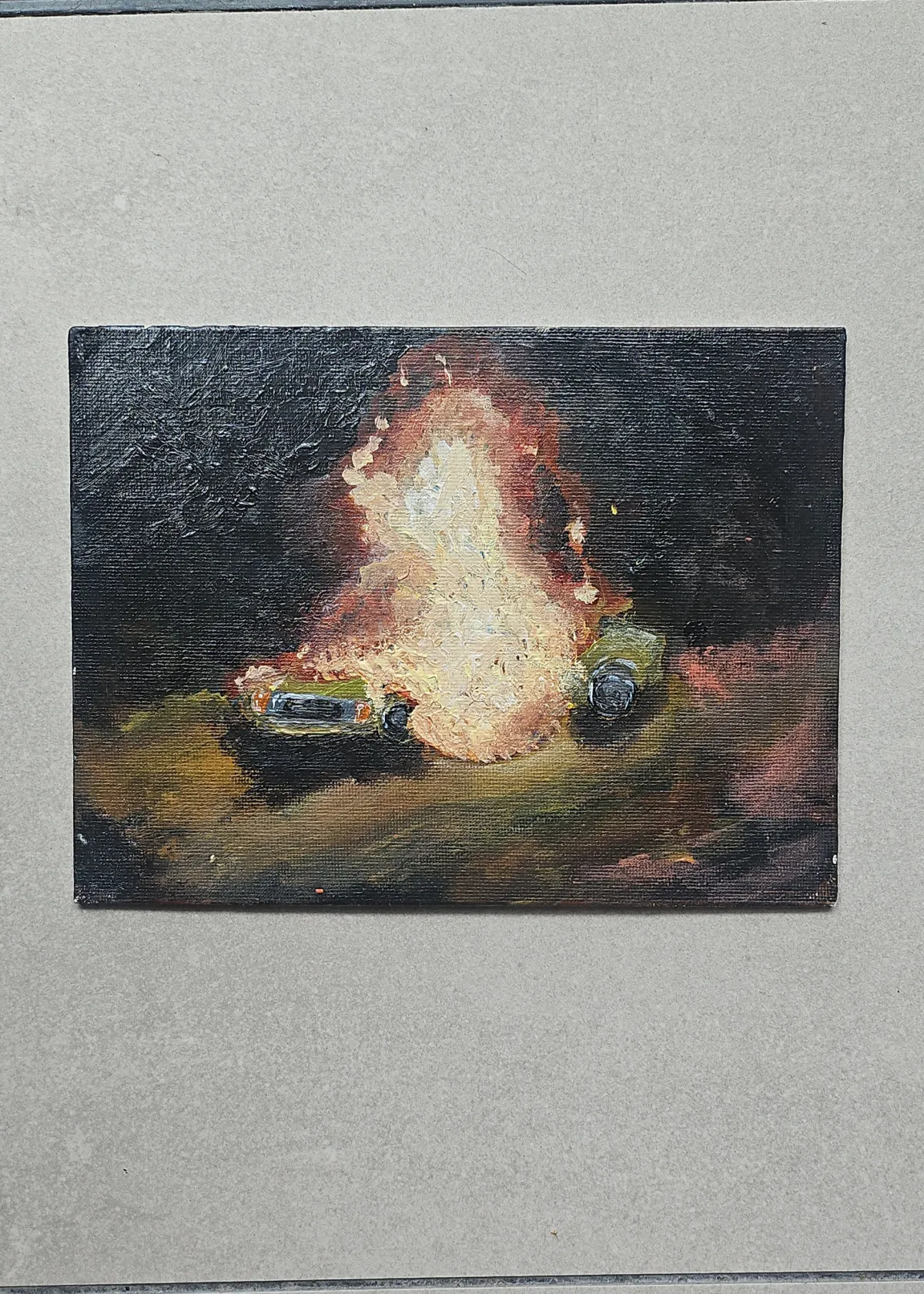 Stage 2 : Anger - Car Burning Painting (Acrylic on canvas, 15 x 20 cm)
