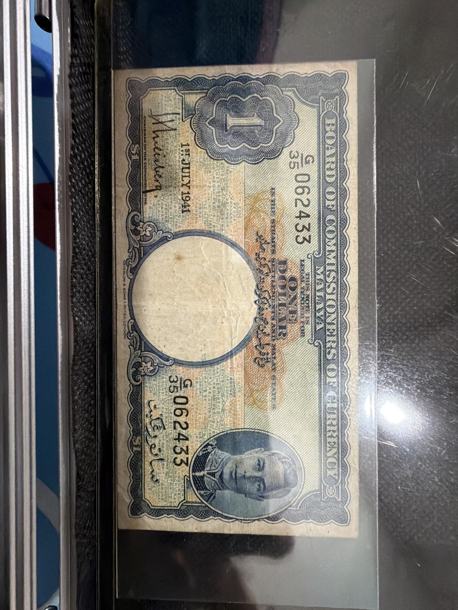 1941 Malaya 1 Dollar Board of Commissioners Currency Note