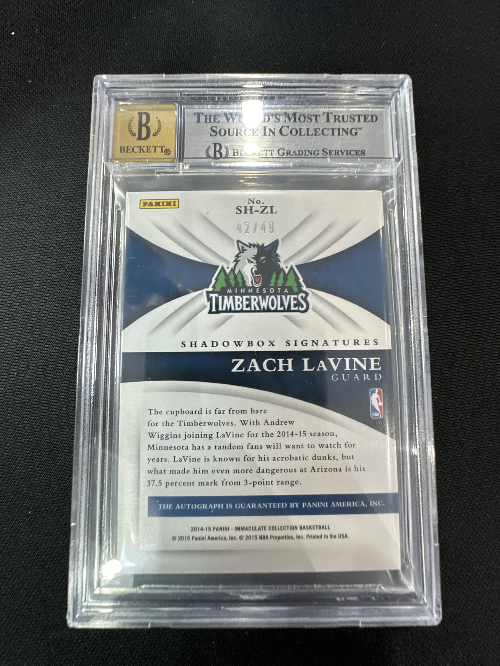 2014-15 Panini Immaculate Zach LaVine Shadowbox Signatures #42/49 BGS 8.5 Auto 10