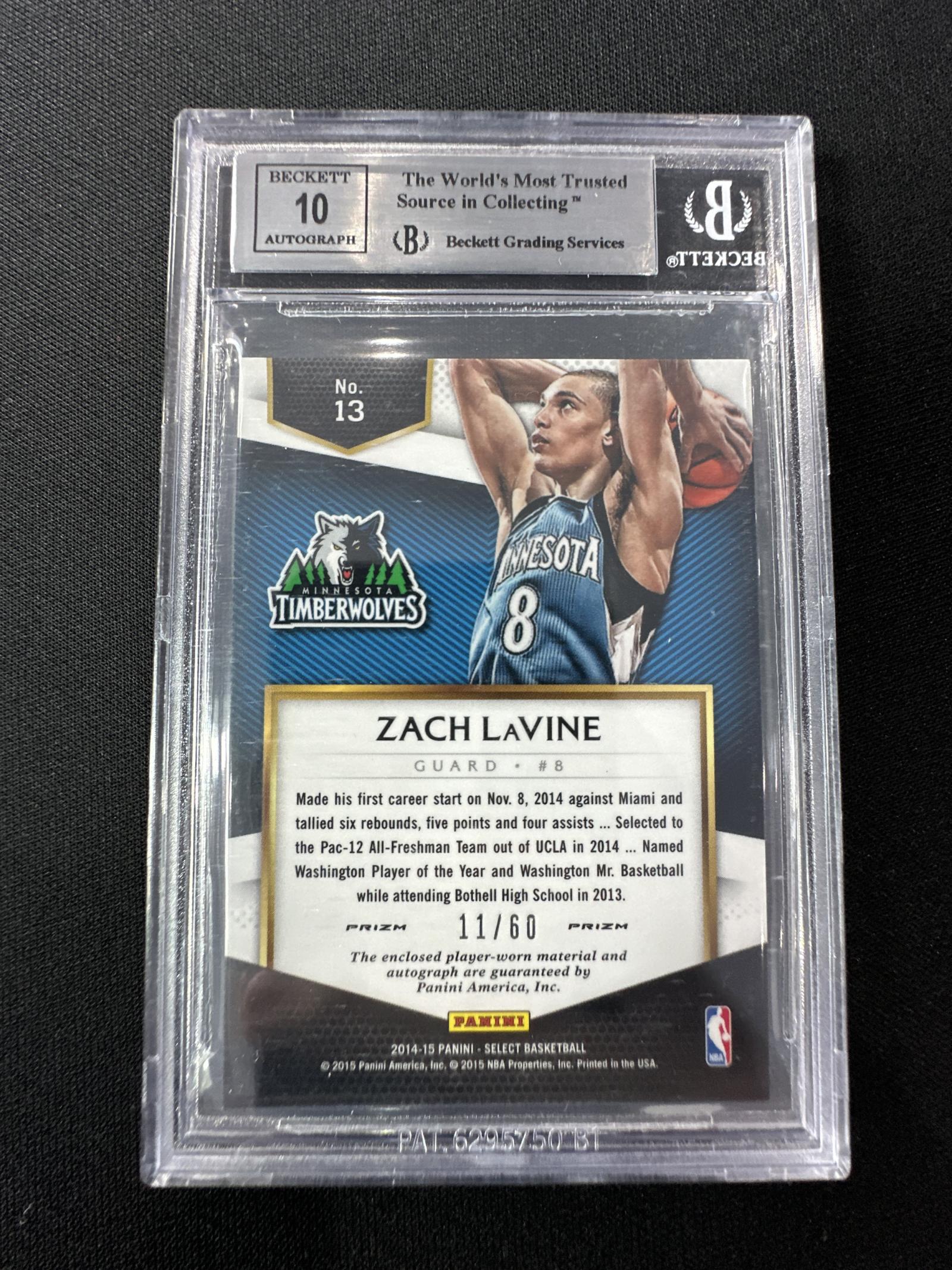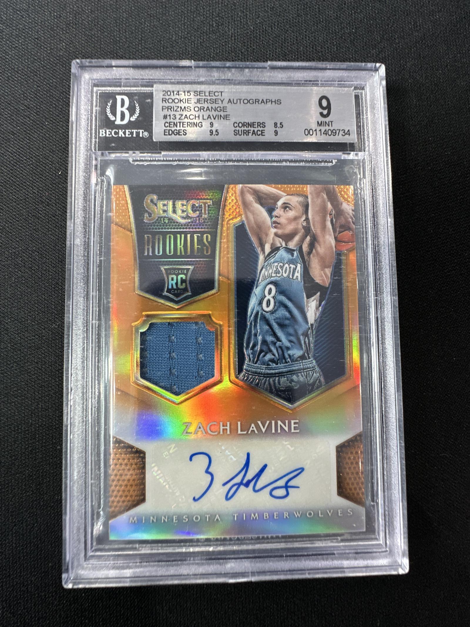 2014-15 Select Zach LaVine Rookie Jersey Autograph Prizms Orange BGS 9 Mint