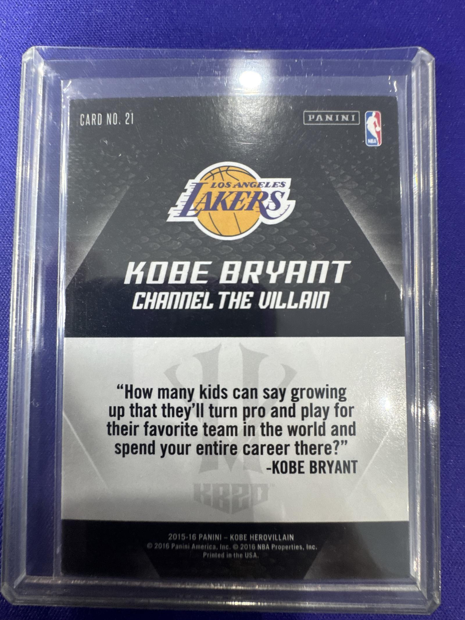 2015-16 Panini Kobe Bryant Farewell Channel The Villain #21 Lakers Card