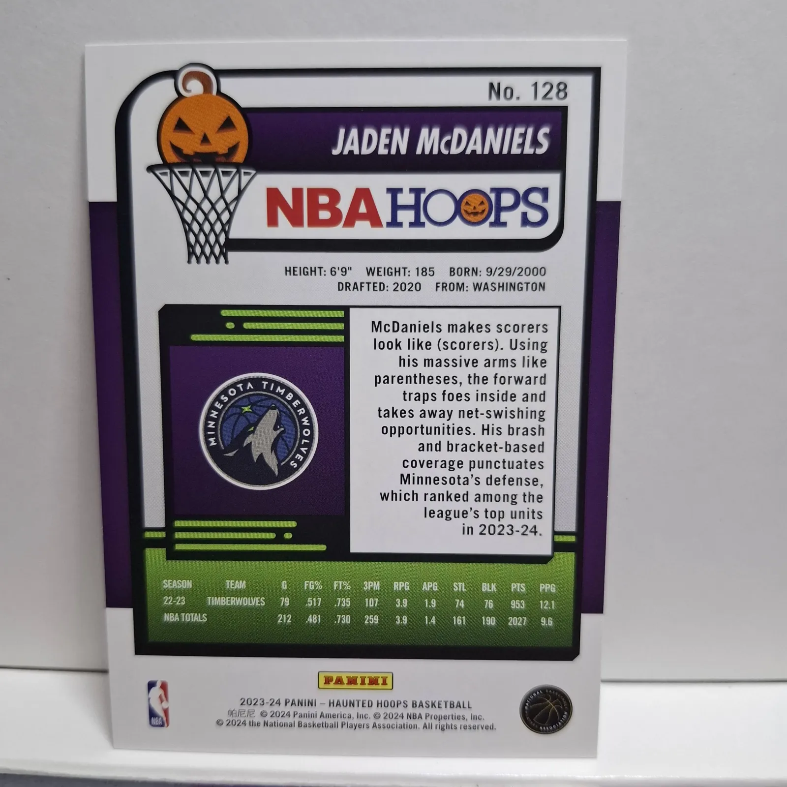 2022-23 NBA Hoops Halloween Jaden McDaniels Minnesota Timberwolves Basketball Card