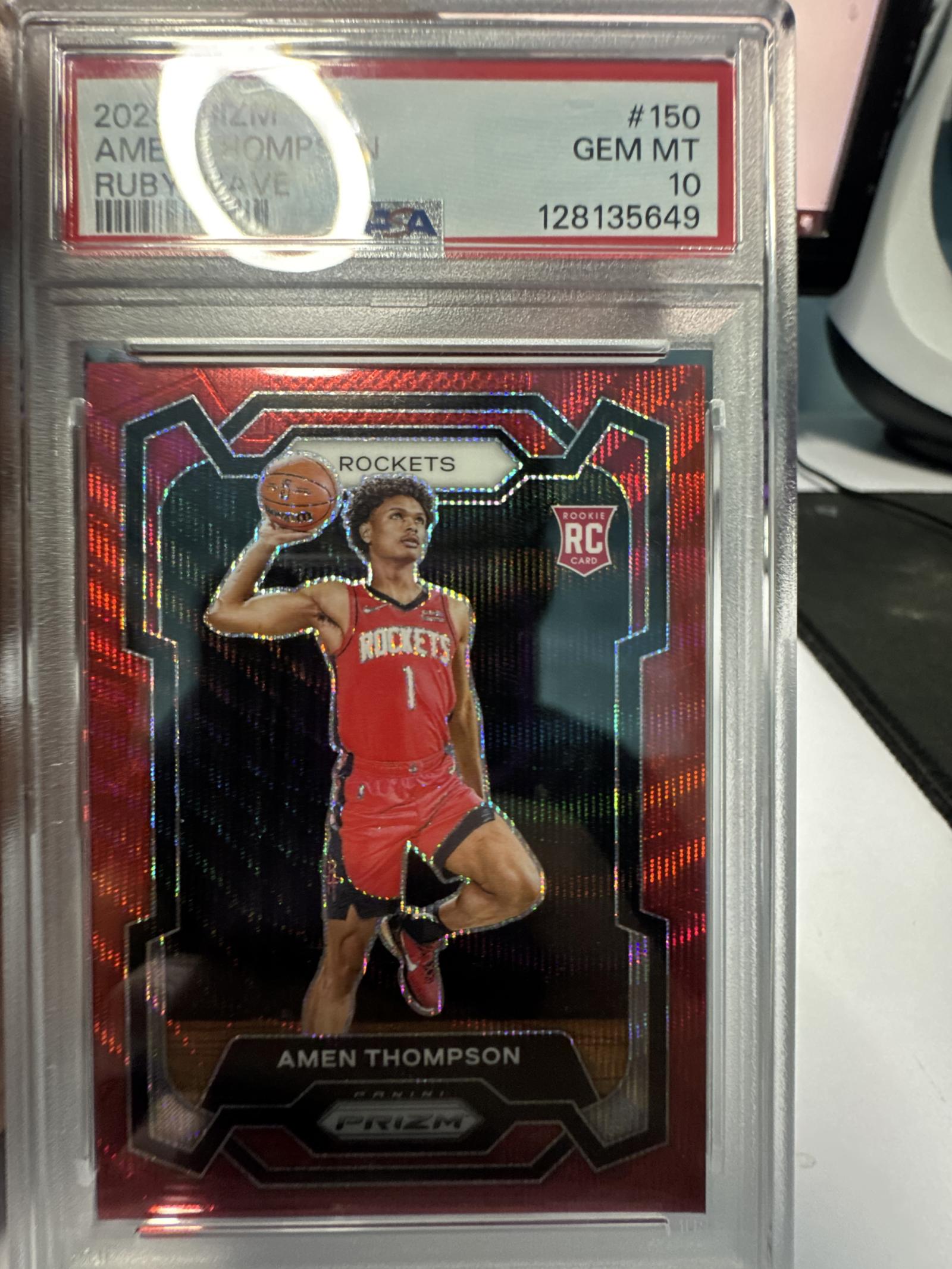 2022-23 Panini Prizm Amen Thompson Rookie Card #150 Red Ruby Wave PSA 10 GEM MT