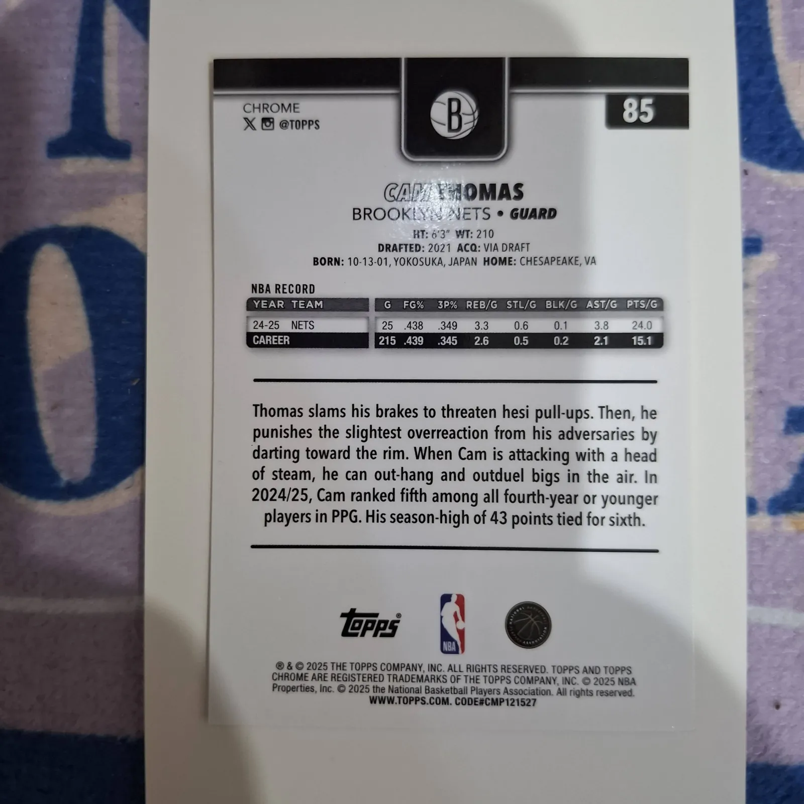 2022-23 Topps Chrome Cam Thomas Brooklyn Nets Basketball Card