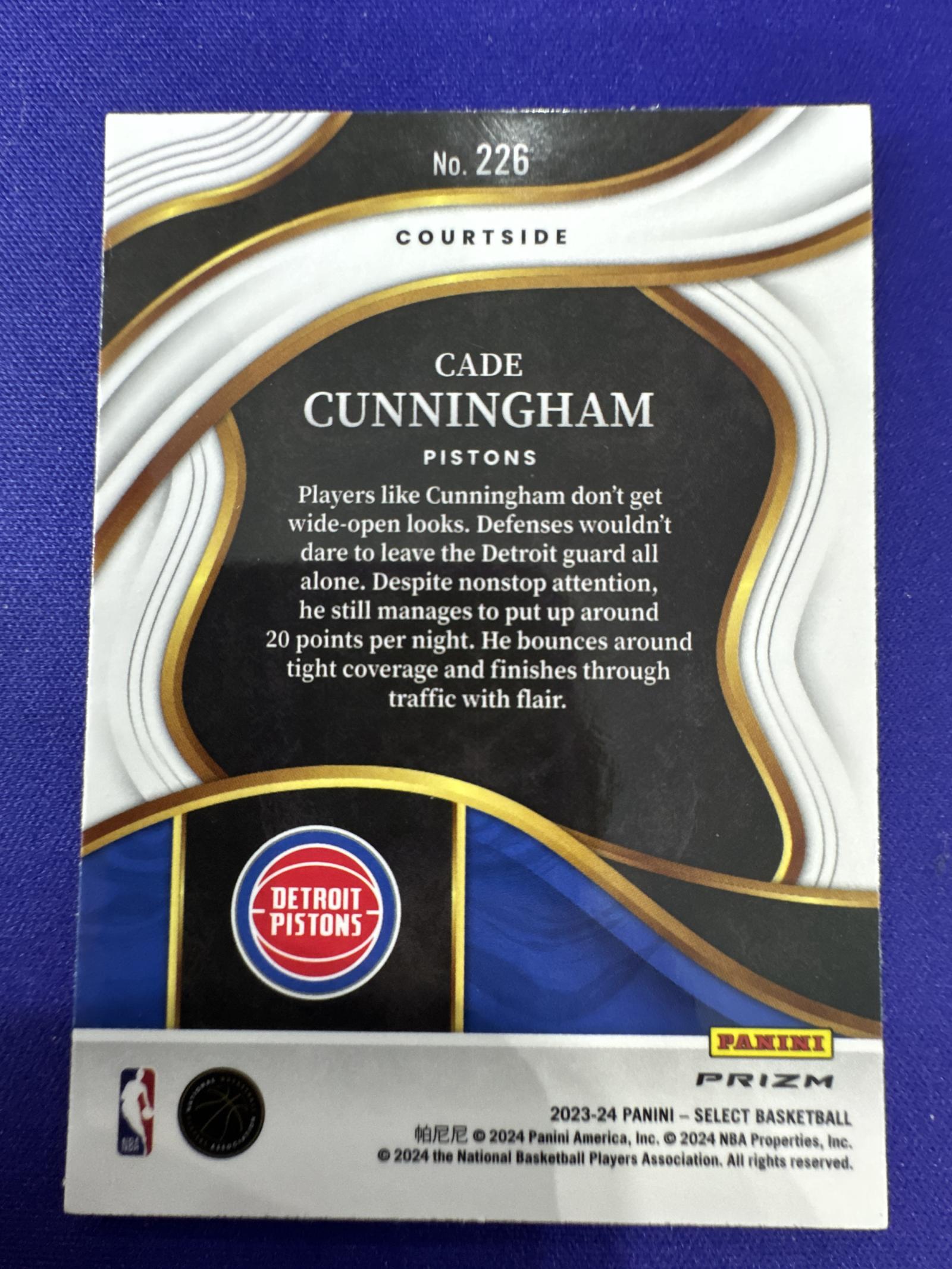 2023-24 Panini Select Cade Cunningham Detroit Pistons Courtside #226 Prizm