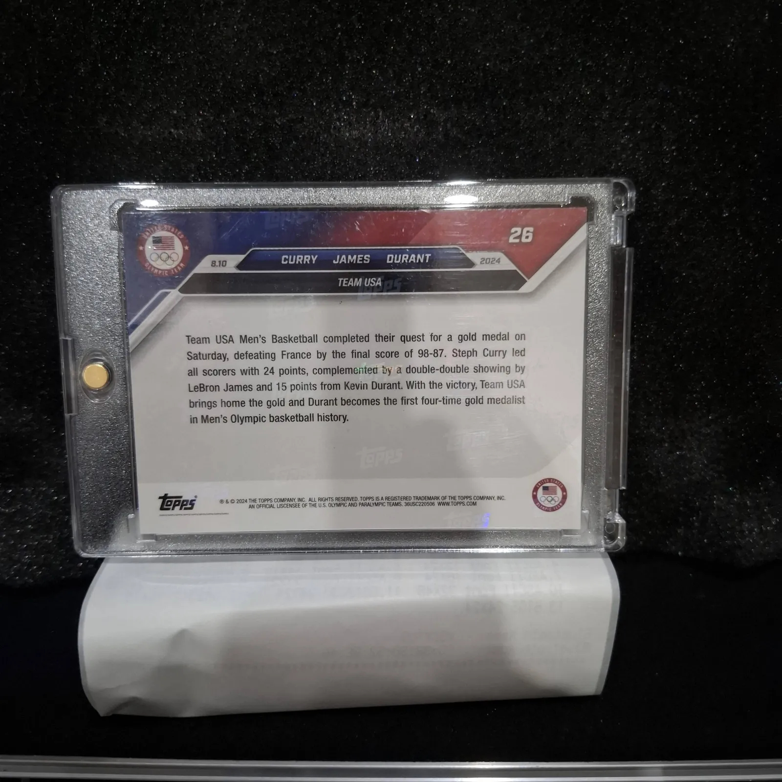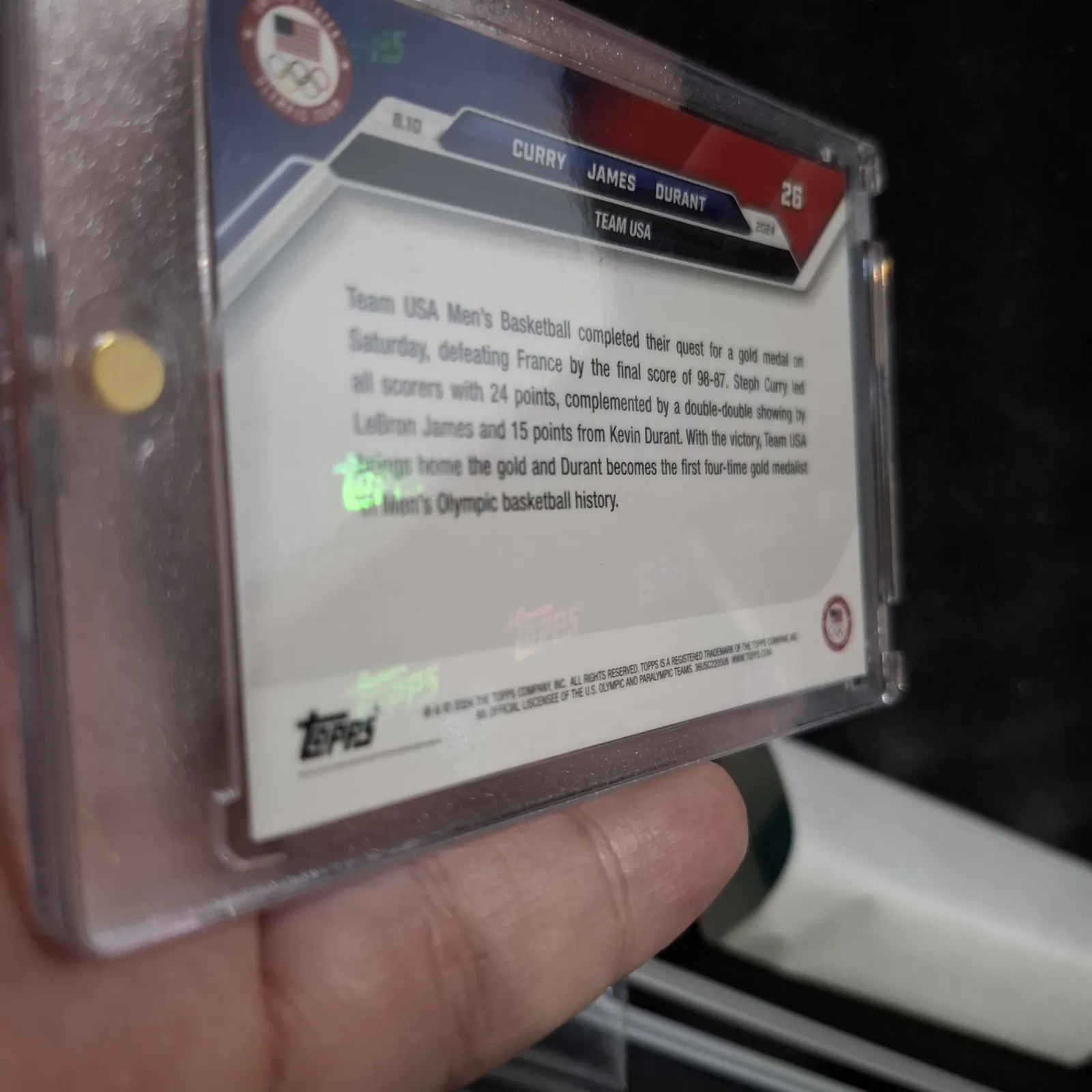 2024 Topps Now USA Basketball Curry, James & Durant Olympic Gold Medal Card