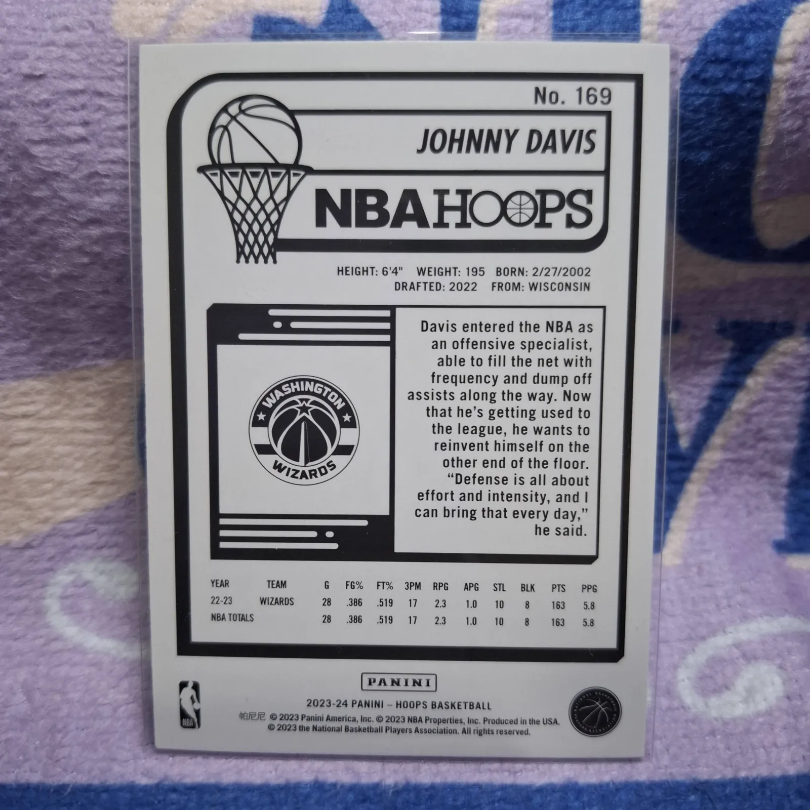 Johnny Davis 2022-23 NBA Hoops Washington Wizards Basketball Card