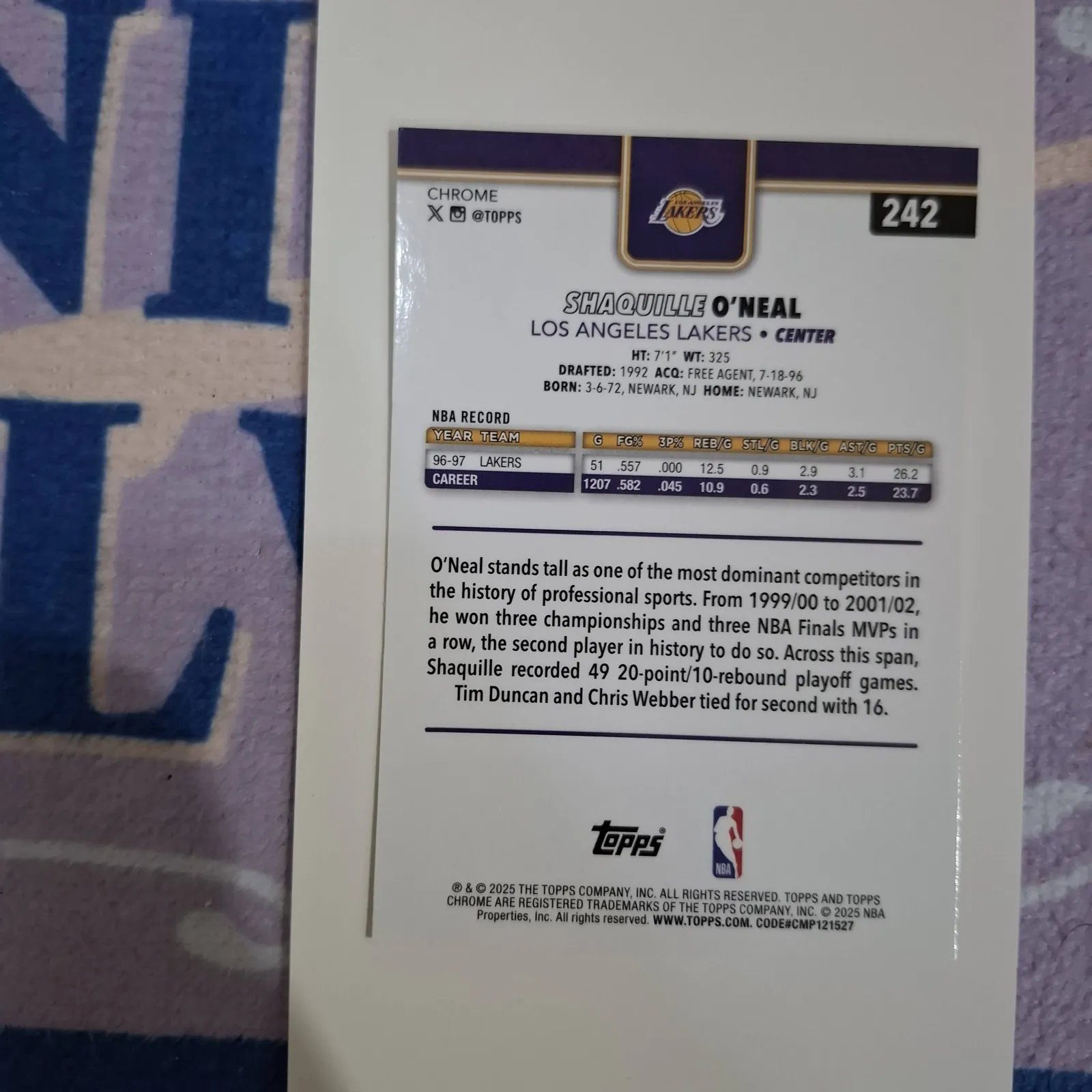 Topps Chrome Shaquille O'Neal Los Angeles Lakers Basketball Card #34