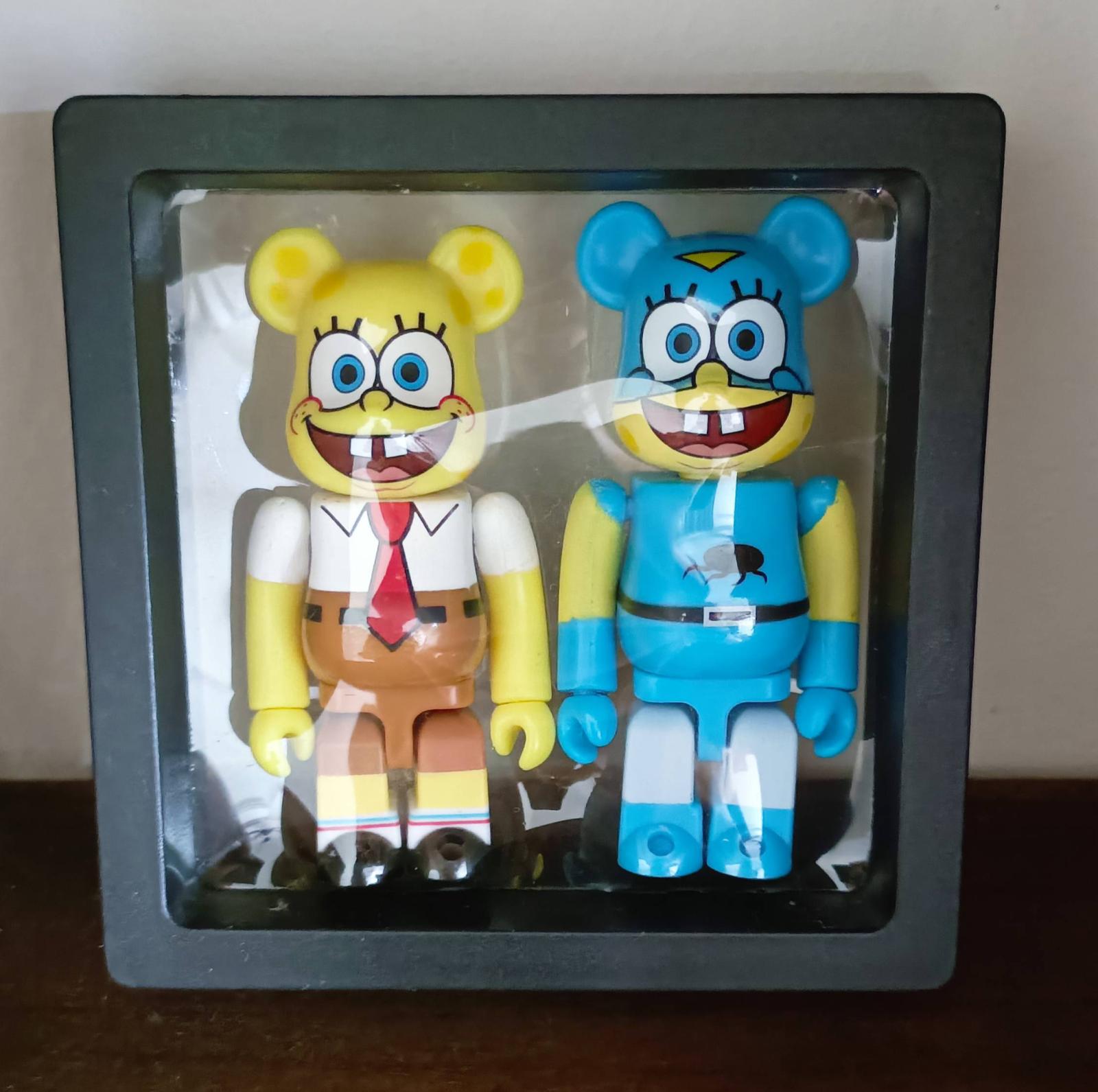 This set features two Bearbrick figures styled after SpongeBob SquarePants characters, SpongeBob and Mermaidman. The figures are displayed in original packaging with clear window for viewing. Perfect for collectors and fans of the iconic animated series. Opened with Card