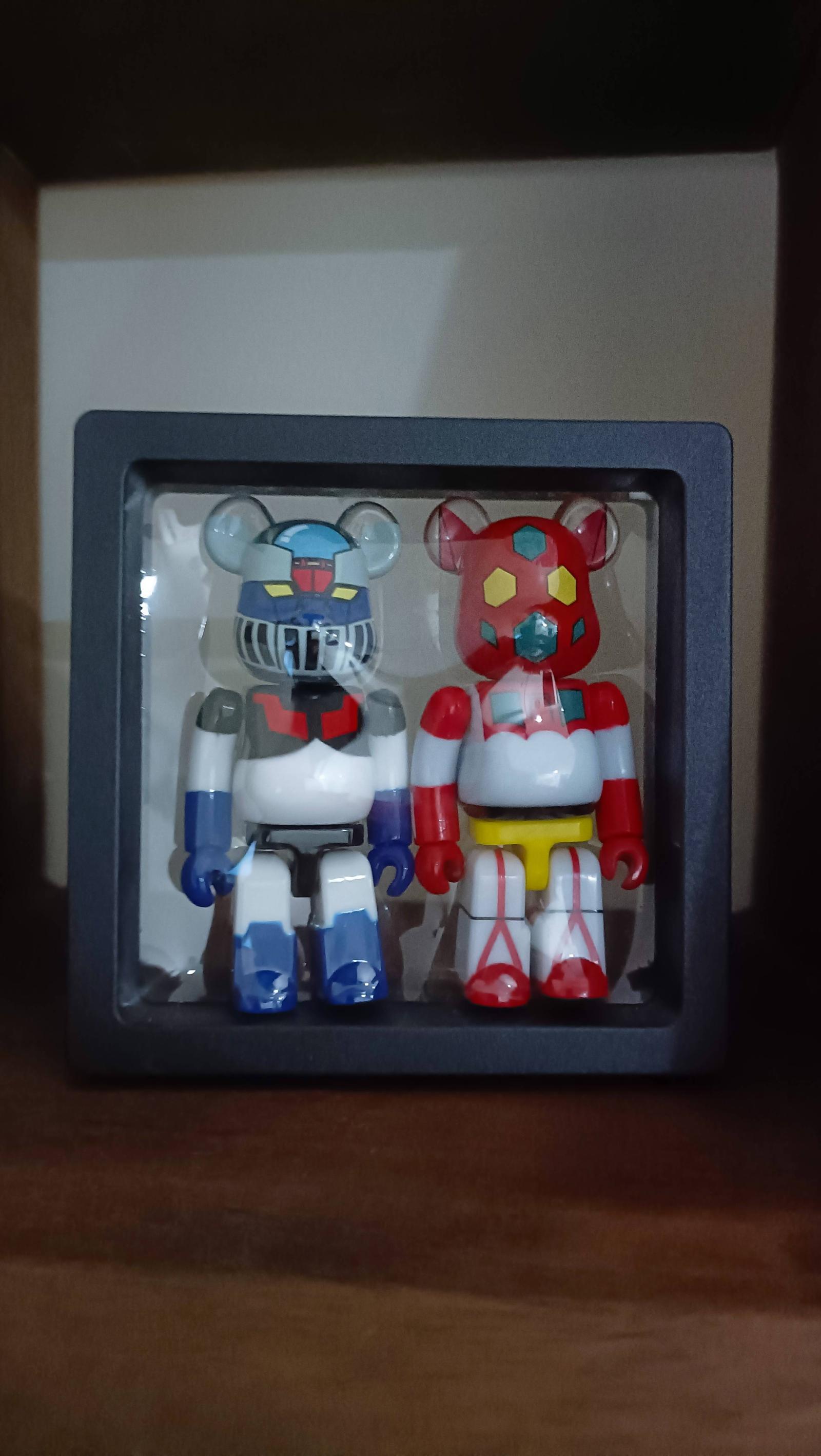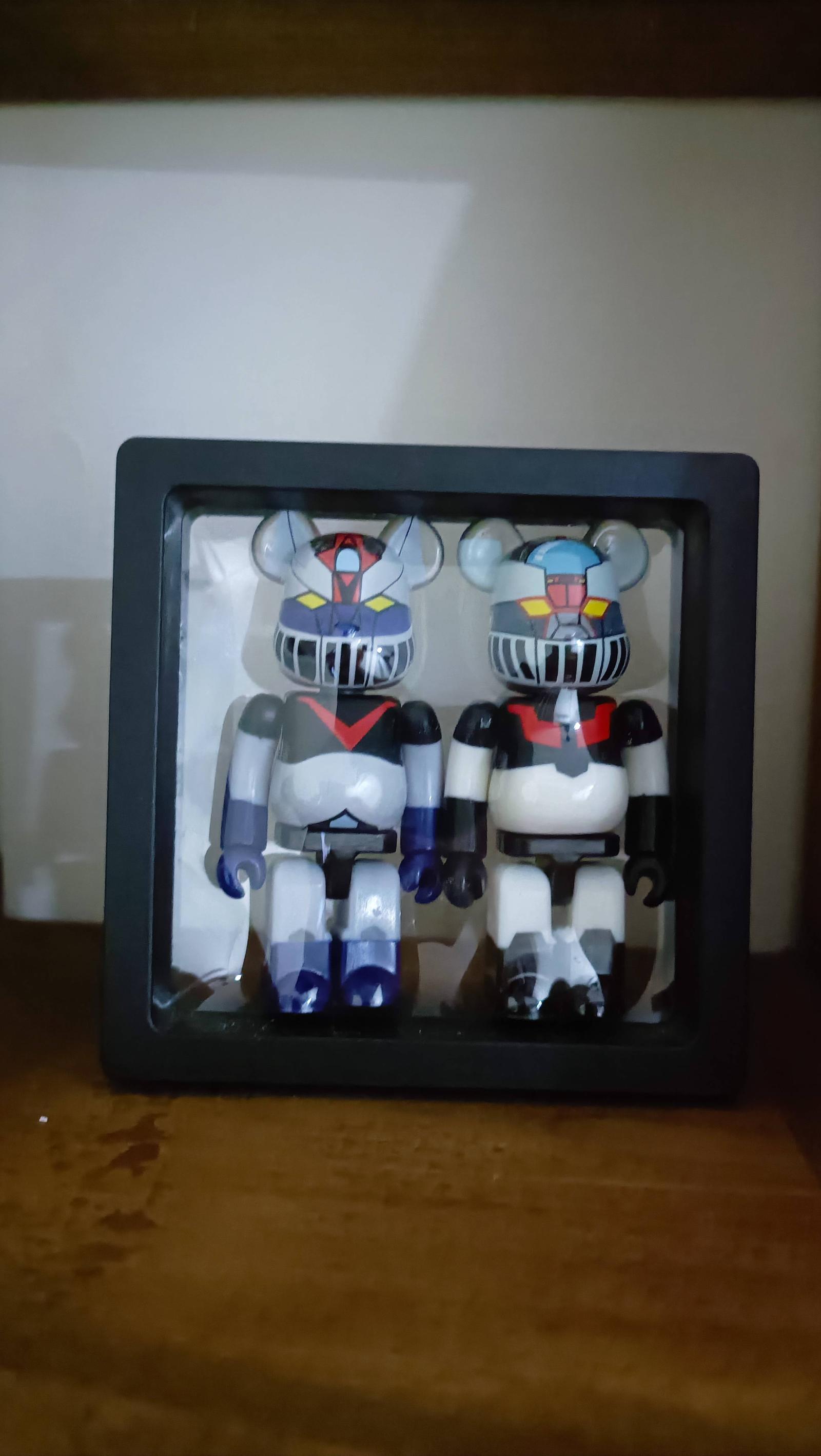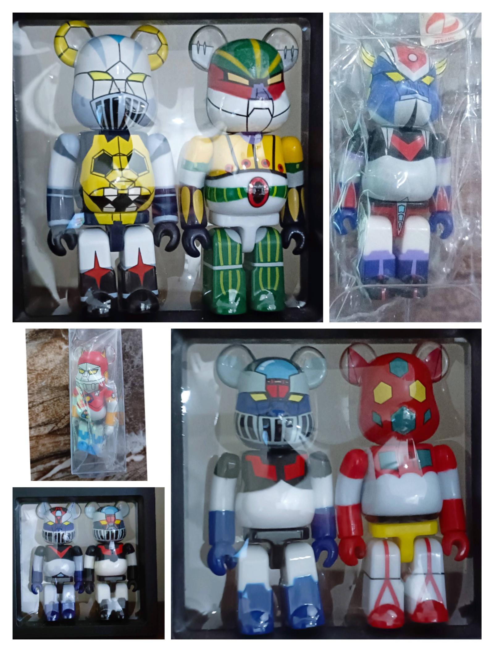 This collectible set includes multiple Marzinger figures featuring robot-themed designs inspired by classic mecha characters. Each figure is housed in a clear display case or blister pack, showcasing vibrant and detailed paintwork. The figures appear to be in their original packaging, making this set a great addition to any Bearbrick or robot figure collection. Opened with card.