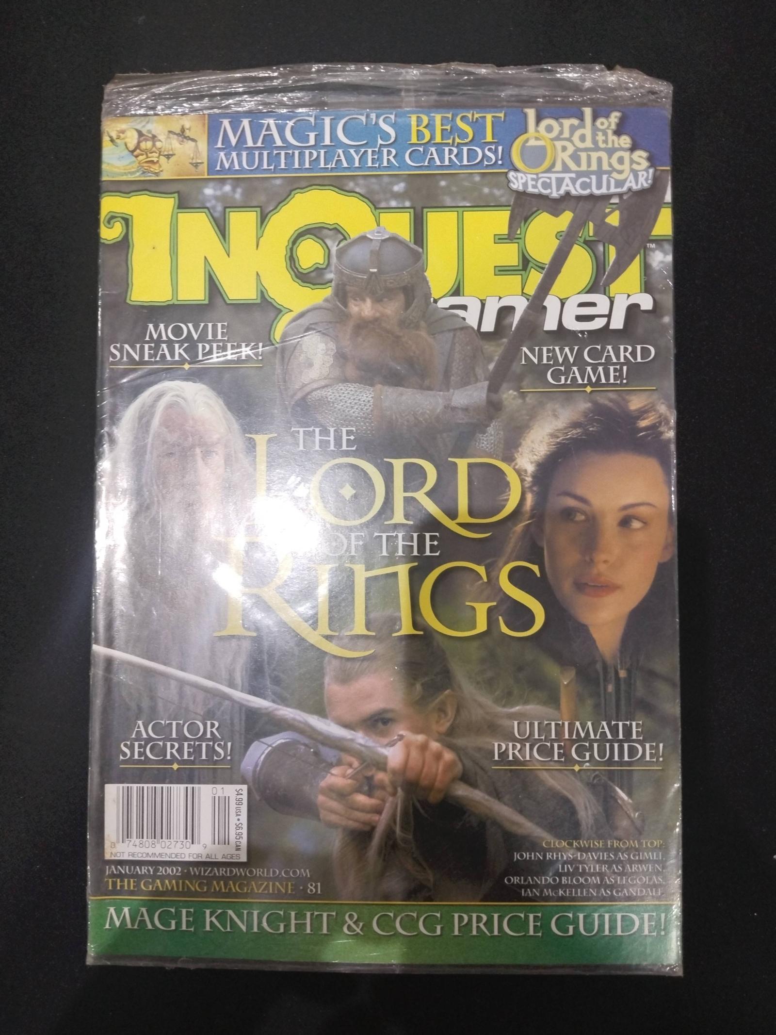 Inquest Gamer magazine issue #81 from January 2002 featuring a special Lord of the Rings cover with actor secrets, a movie sneak peek, and a new card game introduction. Includes Mage Knight & CCG price guide. Artist info not available.