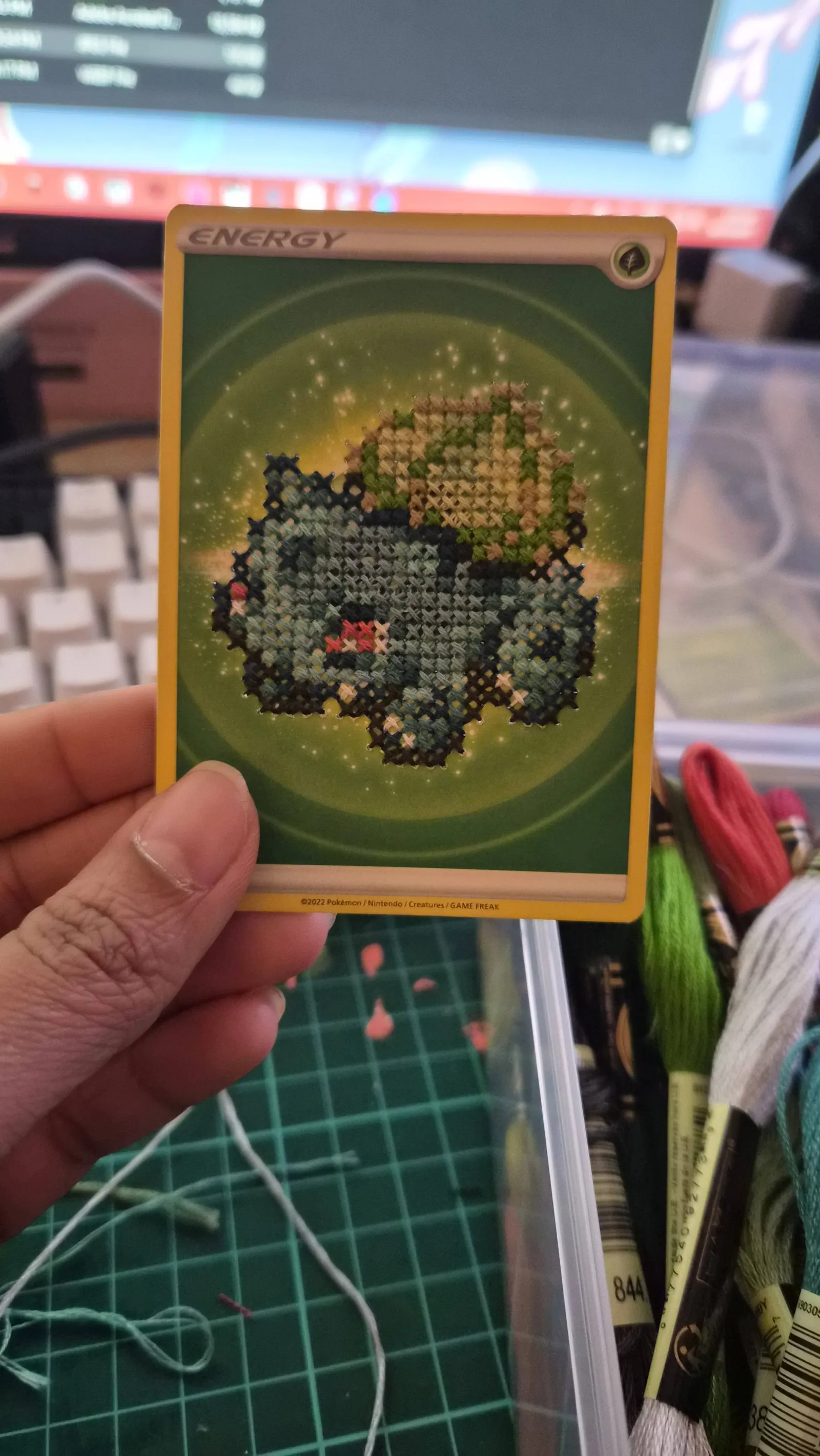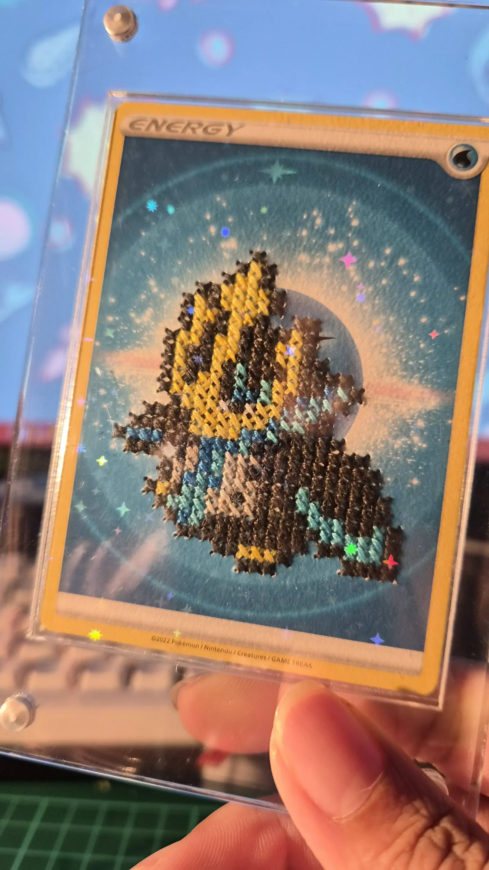 Add these unique cross stitch energy cards to your collection! Purchase a commission slot and request for your favourite Pokémon on an energy card.
