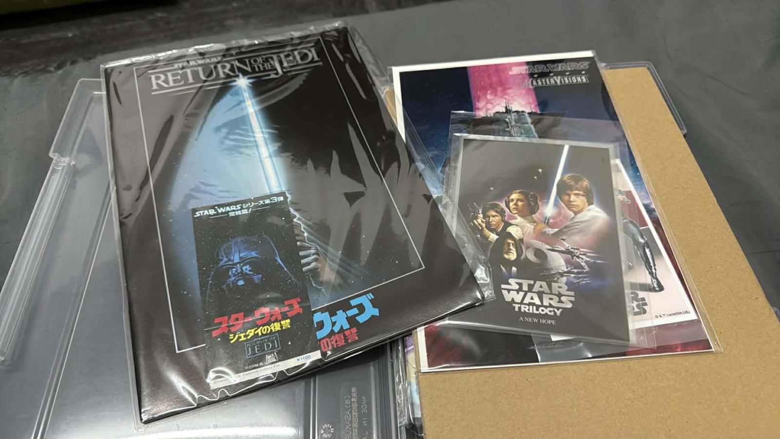 A collectible card-based board game set featuring the Star Wars Trilogy, including 'Return of the Jedi' and 'A New Hope'. The set includes original game materials and cards with Japanese text, carefully preserved in protective sleeves. Ideal for Star Wars fans and collectors of vintage card-based board games.