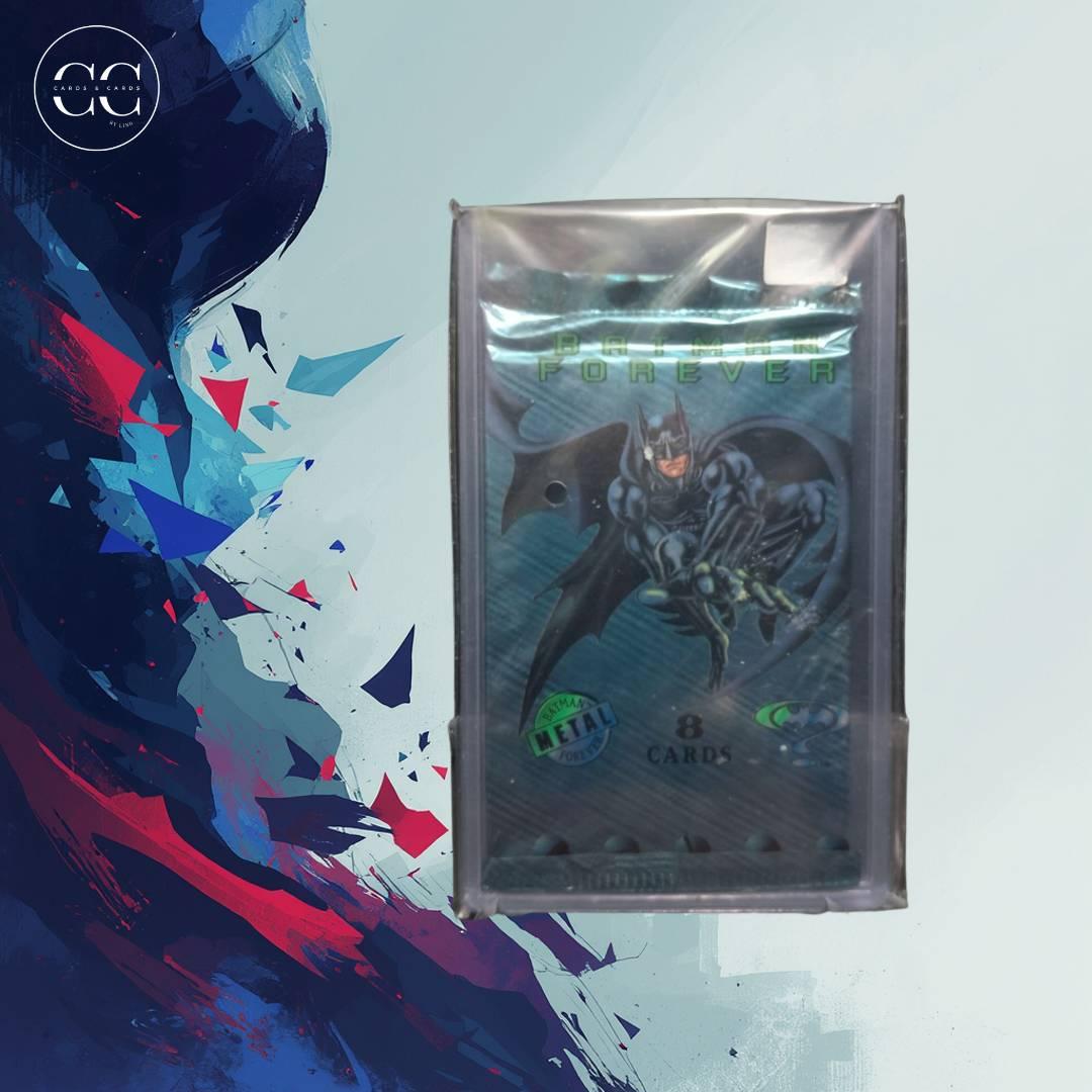 This is a sealed set of 8 official metal insert cards from the 1995 Batman Forever collectible card series. The cards feature Batman artwork and are encased in the original factory shrink wrap, ensuring their authenticity and protection. A great item for collectors and fans of the Batman franchise.
