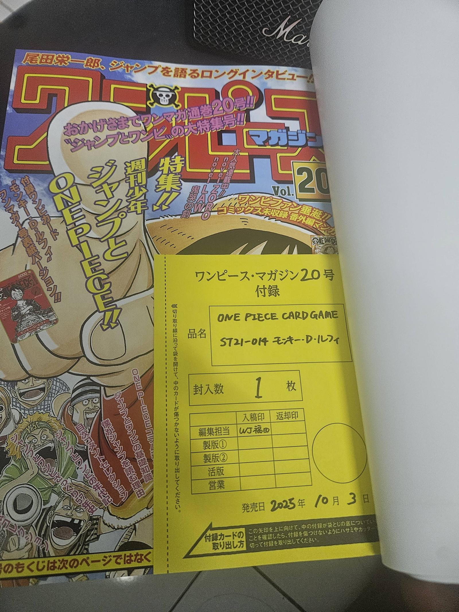 ONE PIECE Magazine Vol. 20 with Exclusive Monkey D. Luffy Card - 2025 Edition