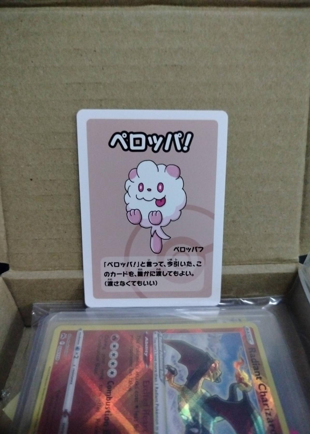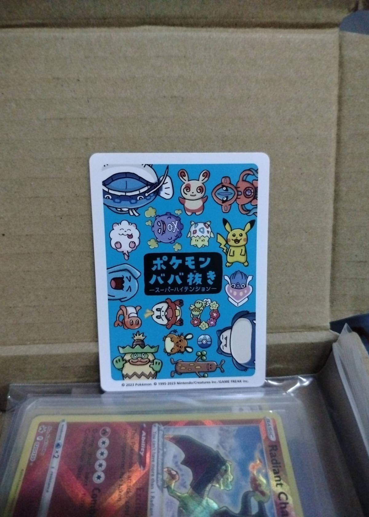 This is a special Swirlix (ペロッパフ) promo card from the Pokémon Babanuki (Old Maid) Super High Tension Show 2023. The card features Swirlix with Japanese text and is a collectible non-TCG promo—not tournament legal or meta-playable, mainly for collectors and fans of unique Pokémon releases. The set was distributed in 2023 and showcases playful, event-themed art. Backside features exclusive Babanuki Pokemon event artwork. No foil treatment or artist information is provided. Not graded.