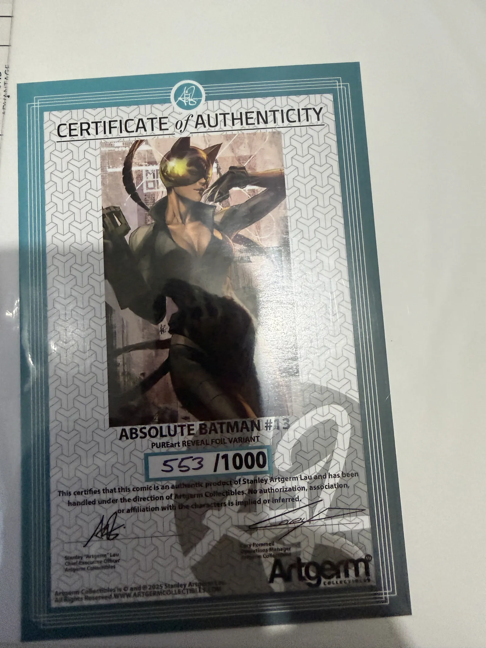 Absolute Batman # 13 ( Artgerm ) Pureart Foil Reveal with COA 563/1000