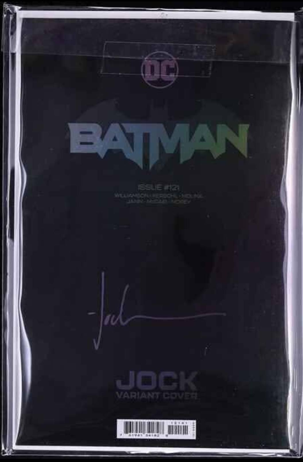 Raw, ungraded comic in the seller’s care. This is the Jock variant cover for Batman #121 with a full holographic / iridescent effect on the front and a clear silver signature (Jock) on the back cover. The book has been stored in a bag-and-board for protection; shown images include front holographic sheen and back with the artist’s signature.