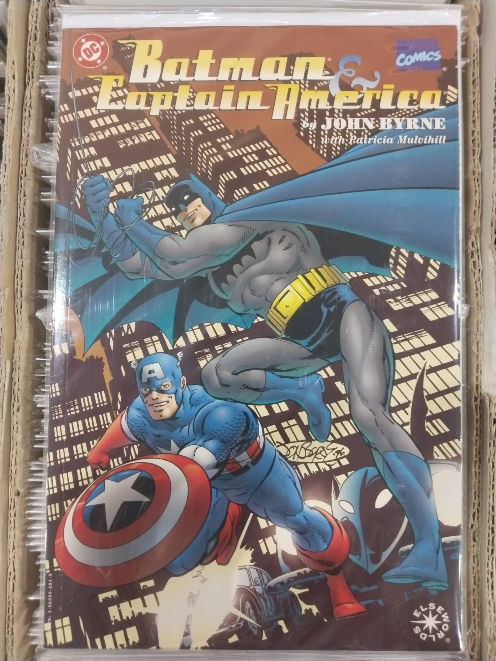 This collectible comic features Batman and Captain America, illustrated by renowned artist John Byrne, with Patricia Mulvihill. Published in 1996, this special edition is a notable crossover between DC and Marvel characters. The comic appears to be in excellent condition, bagged and boarded for protection. No grading or slab information is available.