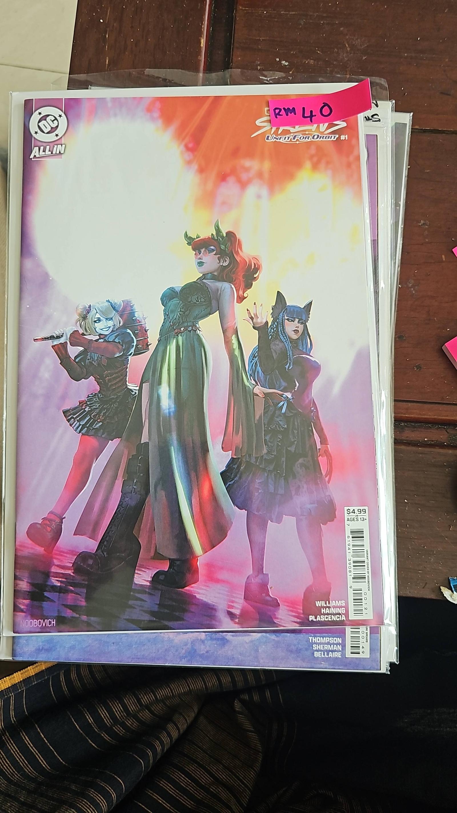 Gotham City Sirens Unfit For Orbit #1 Cover B Noobovich Variant Comic Book First Print 2025 MEN MAY BE FROM MARS, BUT BADDIES ARE FROM VENUS! There's a hot new outer space-themed nightclub in Gotham City, and who better to rob it than Catwoman, Ivy, and Harley? But there's more to this intergalactic discotheque than meets the eye(s), as the Sirens discover when they stumble headfirst into a plot to destroy the entire planet led by the club's owner--the alien despot Despero! I hope you have good insurance, Gotham City, because you're about to get wrecked. Special appearances by deadly DJs, hunky alien hotties, dancers dressed as aliens, mutant failures, one wild UFO, and lots and lots of fire!