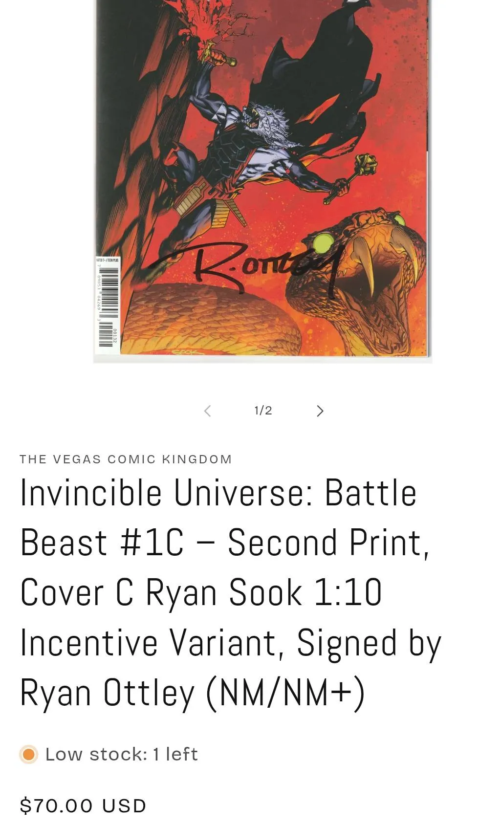 Invincible Universe: Battle Beast #1–2nd Print, Cover C Ryan Sook 1:10 Variant, Signed by Ryan Ottley