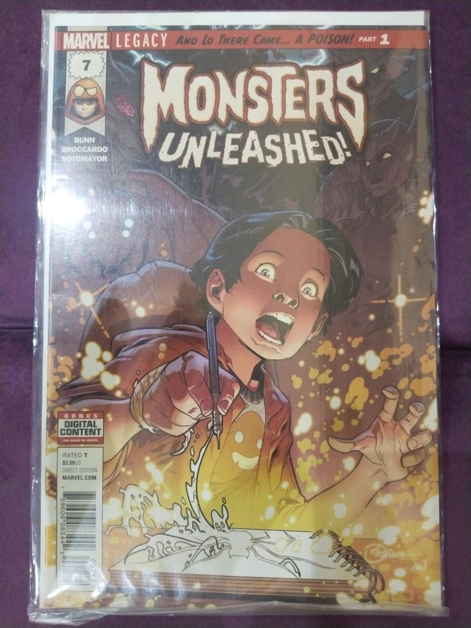 Monsters Unleashed! issue #7 from Marvel Legacy series. Written by Cullen Bunn with artwork by Matteo Lolli. This comic follows the exciting and supernatural storyline featuring unleashed monsters. Direct edition, rated T. No grading or slabbing information available.