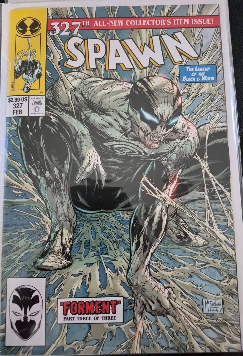 This issue #327 of Spawn features the 'Forment' storyline, part three of three. The cover art is by Todd McFarlane, highlighting the legend of the Black & White. This is an all-new collector's item issue released by Image Comics. The comic is highly sought after by collectors for its detailed artwork and continuation of the Spawn series.