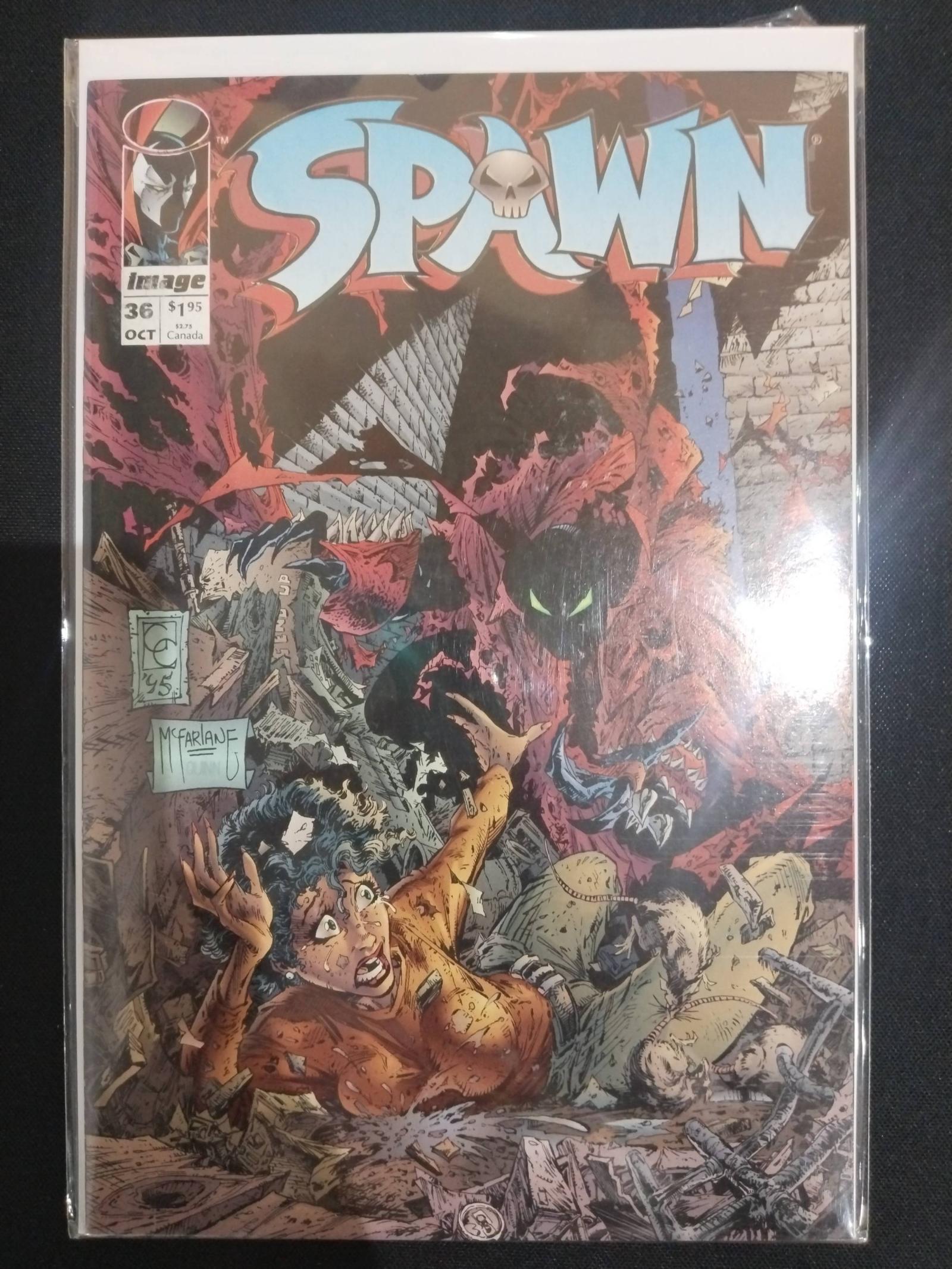 Spawn issue #36 published by Image Comics in 1995. Cover and artwork by Todd McFarlane, showcasing intense and dark imagery typical of the series. The comic is a classic addition for Spawn collectors.