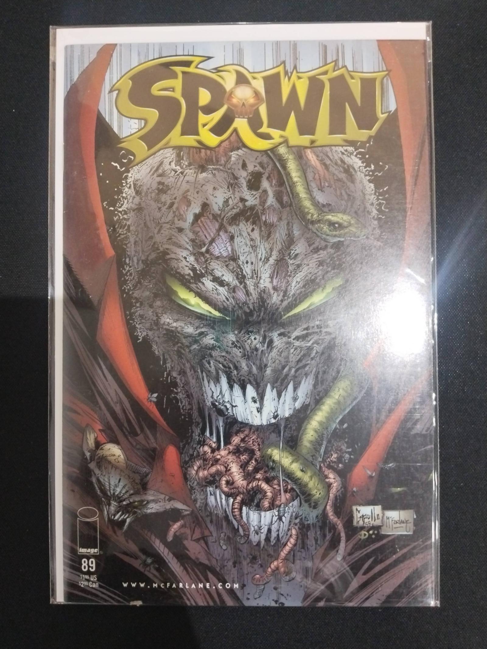 Spawn #89, an Image Comics series created by Todd McFarlane. Featuring dark and intense cover art by McFarlane himself, illustrating the iconic Spawn character with a grotesque and vivid style. Published in the year 2000. This issue is not slabbed or graded.