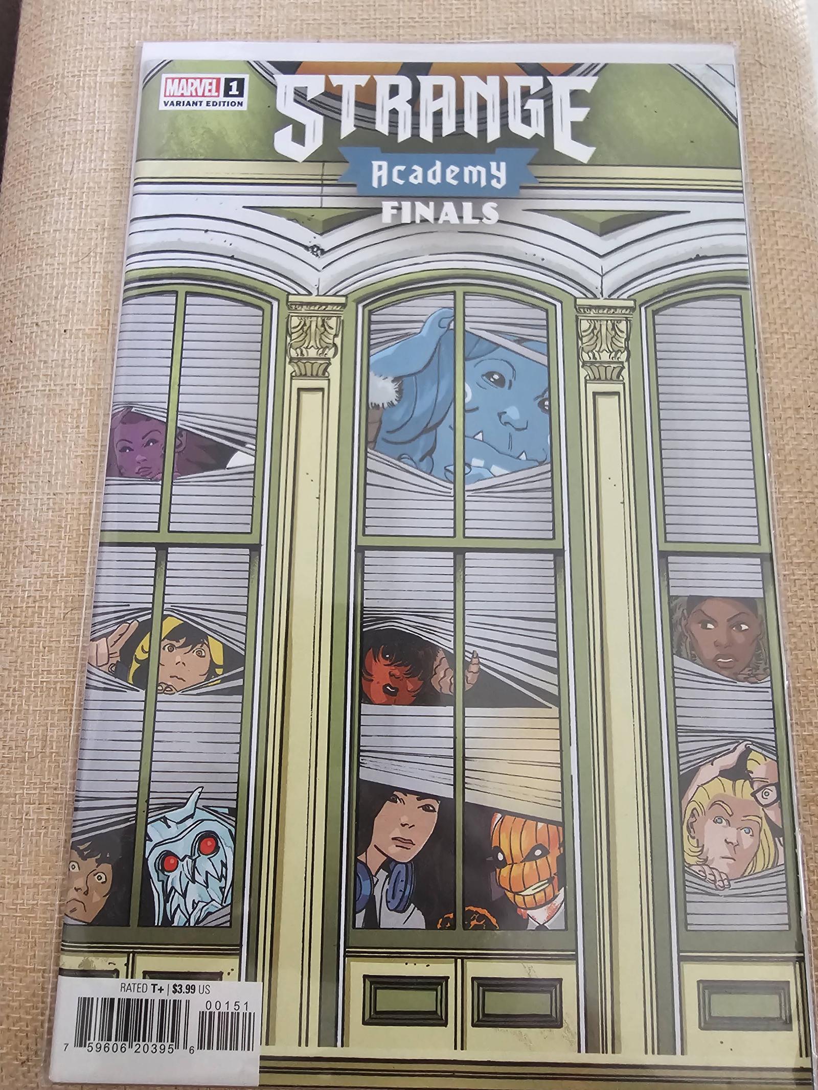 Strange Academy Finals #1 is a Marvel variant edition featuring cover art by artist Humberto Ramos. This issue showcases an intriguing look at the characters through window blinds on the cover. It is a key collectible for fans of the Strange Academy series.