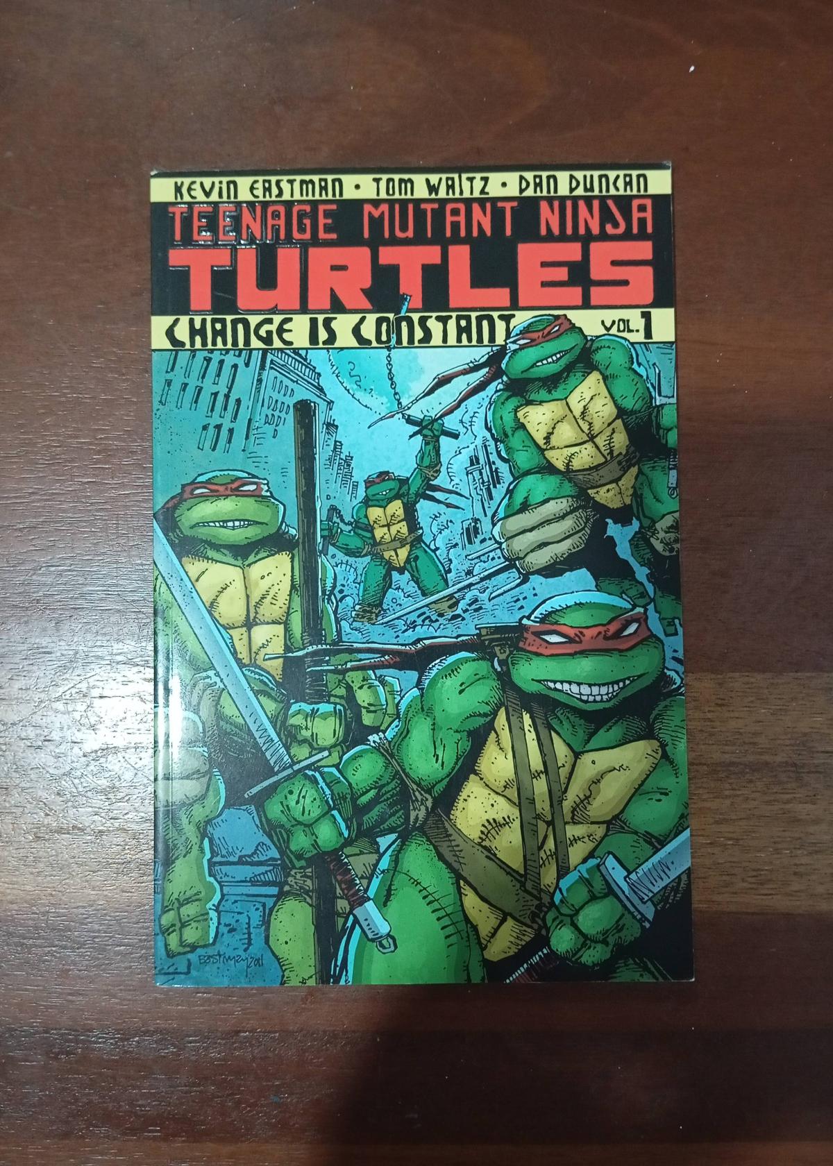 Teenage Mutant Ninja Turtles: Change Is Constant Vol. 1 collects the start of the IDW run, written by Kevin Eastman and Tom Waltz, with art by Dan Duncan. This hardcover edition features iconic cover art and brings new adventures for the Turtles. A must-have for TMNT fans and collectors. Special note: Kevin Eastman, co-creator of TMNT, is credited as co-writer and cover artist.
