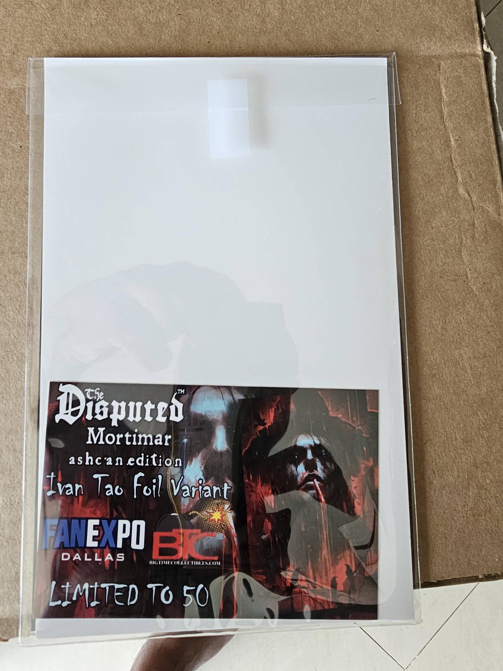 The Disputed Mortimar Ashcan Edition is a limited variant comic featuring artwork by Ivan Tao. This foil variant is a special edition released for Fan Expo Dallas and is limited to only 50 copies, making it a rare collectible item.