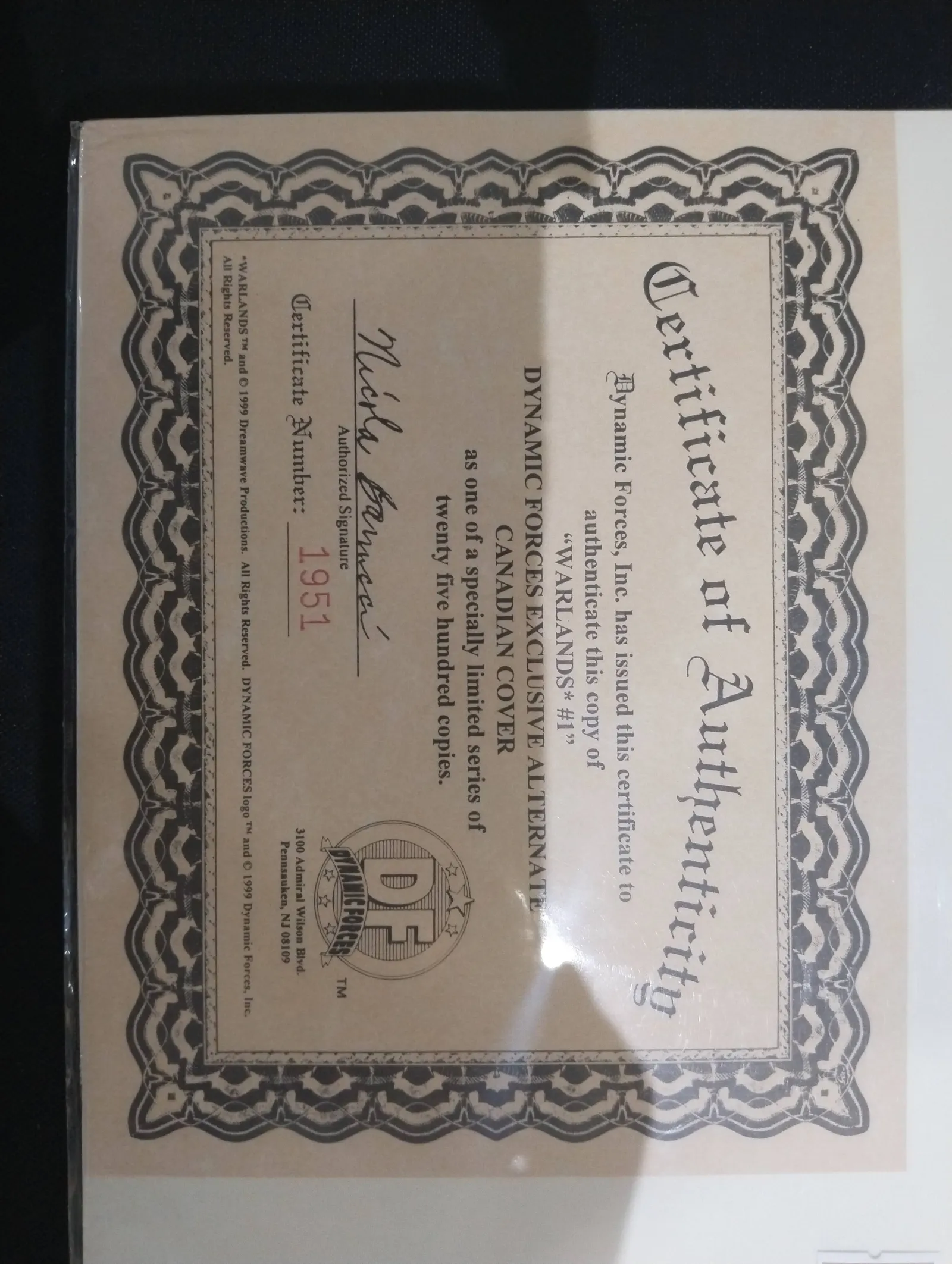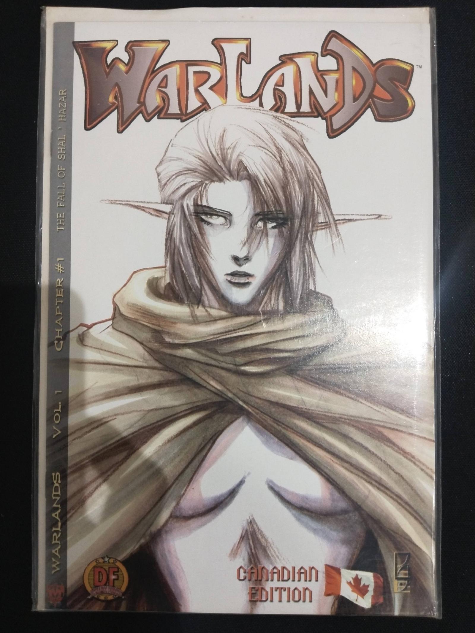 Warlands Vol. 1 Chapter #1 The Fall of Shal Hazar. DF COA This Canadian edition features the striking art style characteristic of the Warlands series. The cover showcases an elf-like character with a cloak, drawn in a detailed and atmospheric style. Artist details are not specified. This is an ungraded comic book.