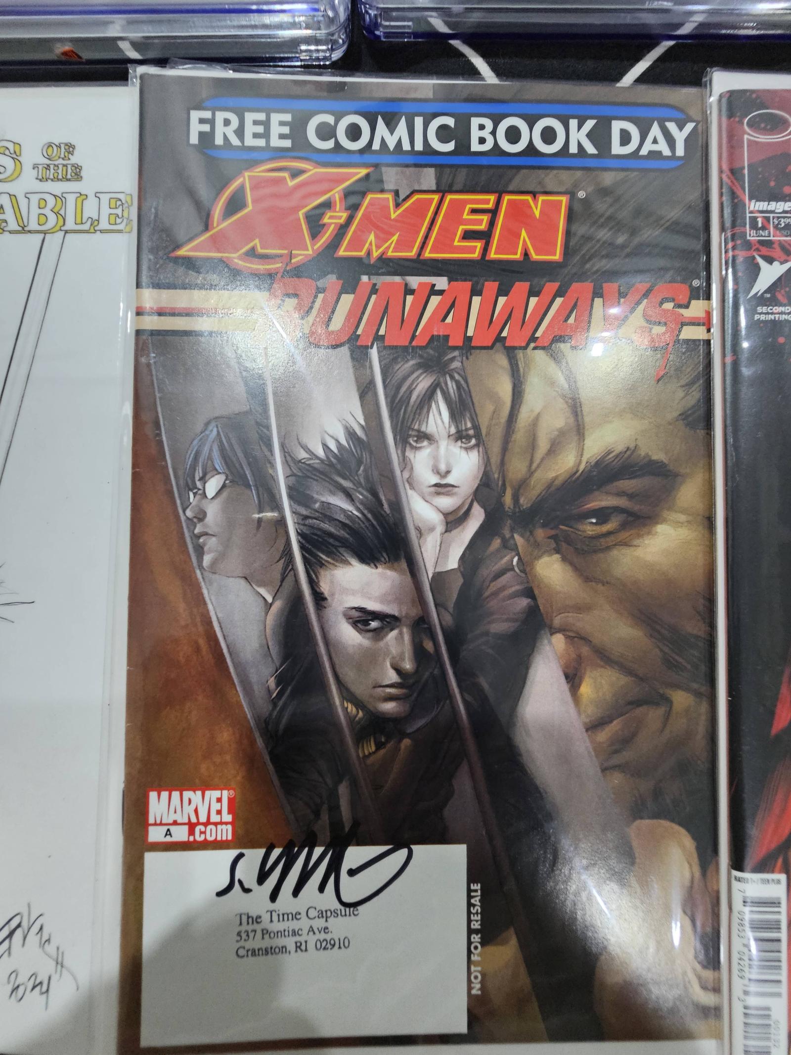 Up for sale is a rare collector's item: the X-Men / Runaways: Free Comic Book Day (FCBD) promotional comic book published by Marvel in 2006. This specific copy features a signature on the cover attributed to acclaimed comic book artist and writer Skottie Young. This is a great piece for any serious Skottie Young or Marvel Runaways collector! Please review all photos before purchasing.