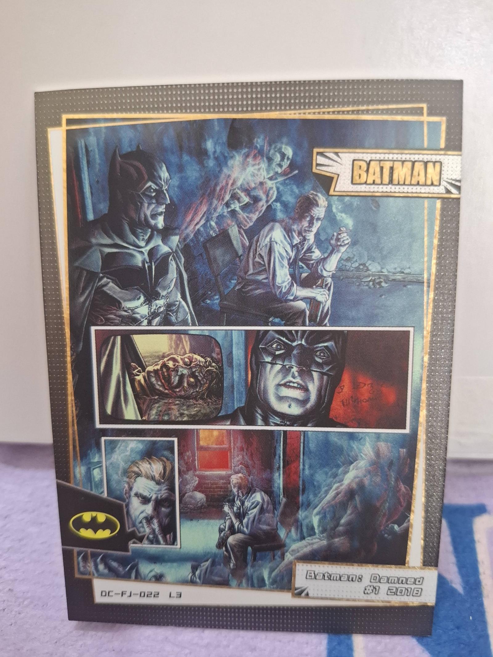 This collectible card features detailed artwork from Batman Damned #1, published in 2018 by DC Comics. The card showcases intense scenes with Batman and other characters in a vivid, dark style. A great addition for DC and Batman collectors.