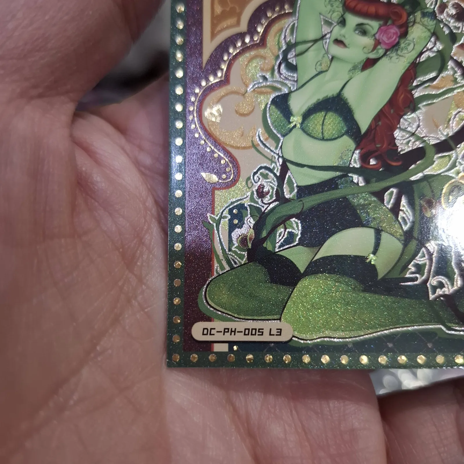 A collectible DC Comics card featuring Poison Ivy in a vintage pin-up style art. The card is compact and has a decorative gold-studded border. Perfect addition for Poison Ivy and Batman fans and collectors.