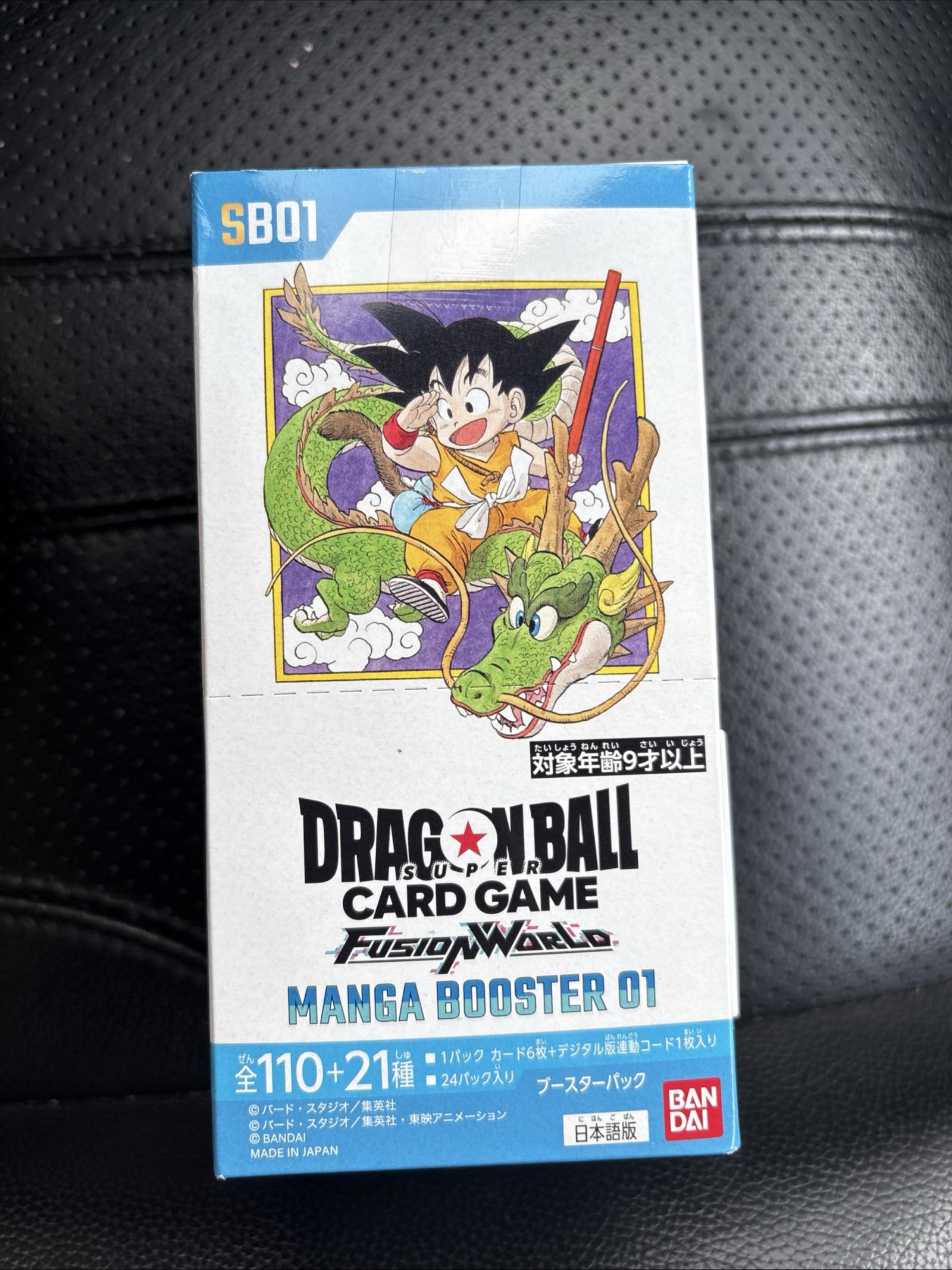 Collectible/playing value: Sealed Japanese boxes like this are sought after by collectors for original-language art and pack-chase potential, and they also provide players access to a full booster box’s worth of playable cards and digital codes. The SB01 Manga Booster 01 remains a clean addition to a sealed-product collection or draft/play pool for Dragon Ball Super TCG enthusiasts.