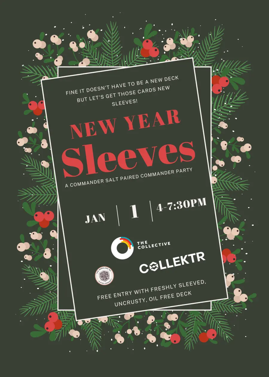 Join us for the New Year Sleeves Commander Party at The Collective! ππ« Letβs celebrate the start of 2025 with some new sleeves, new vibes, and unforgettable games of Commander.