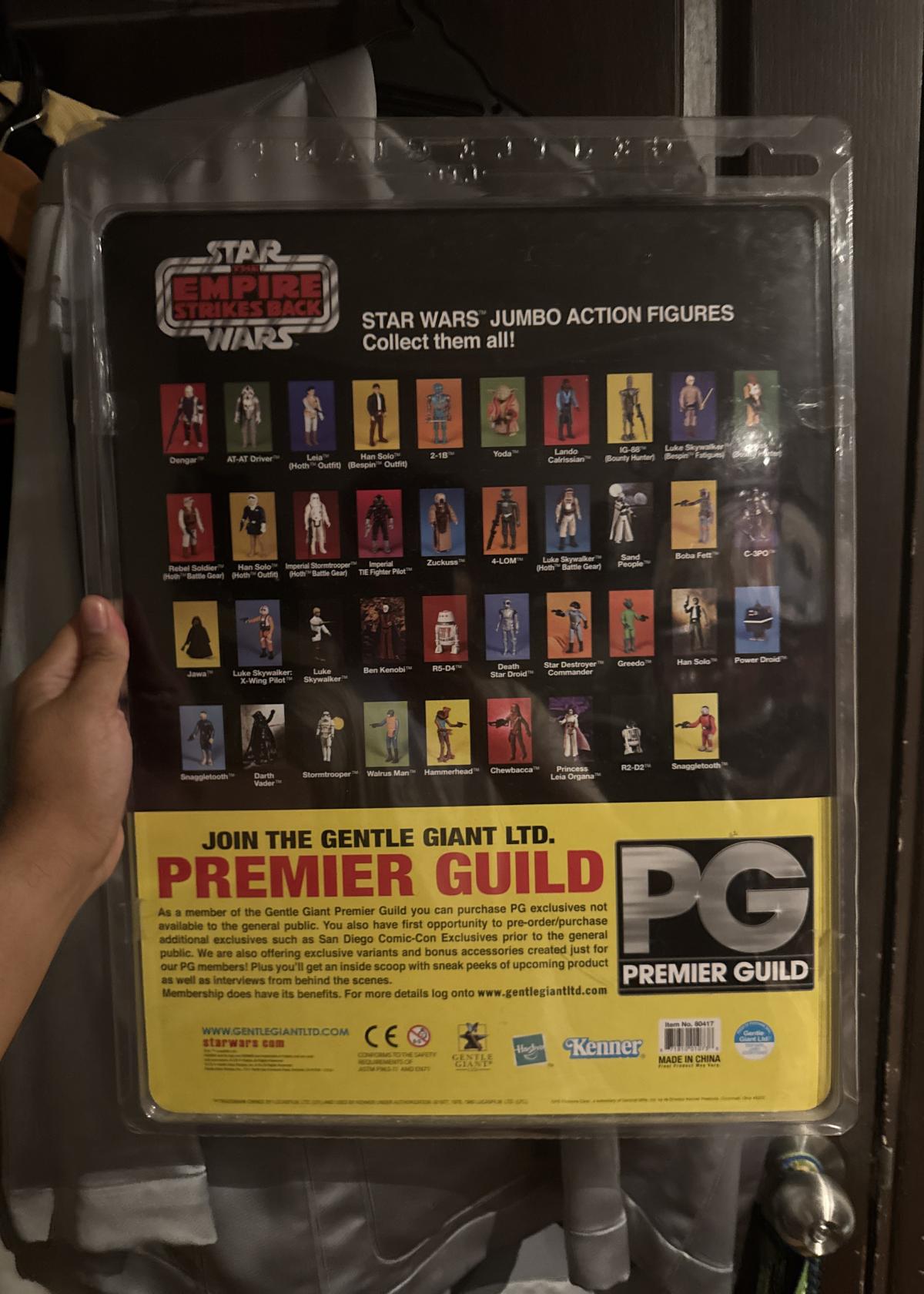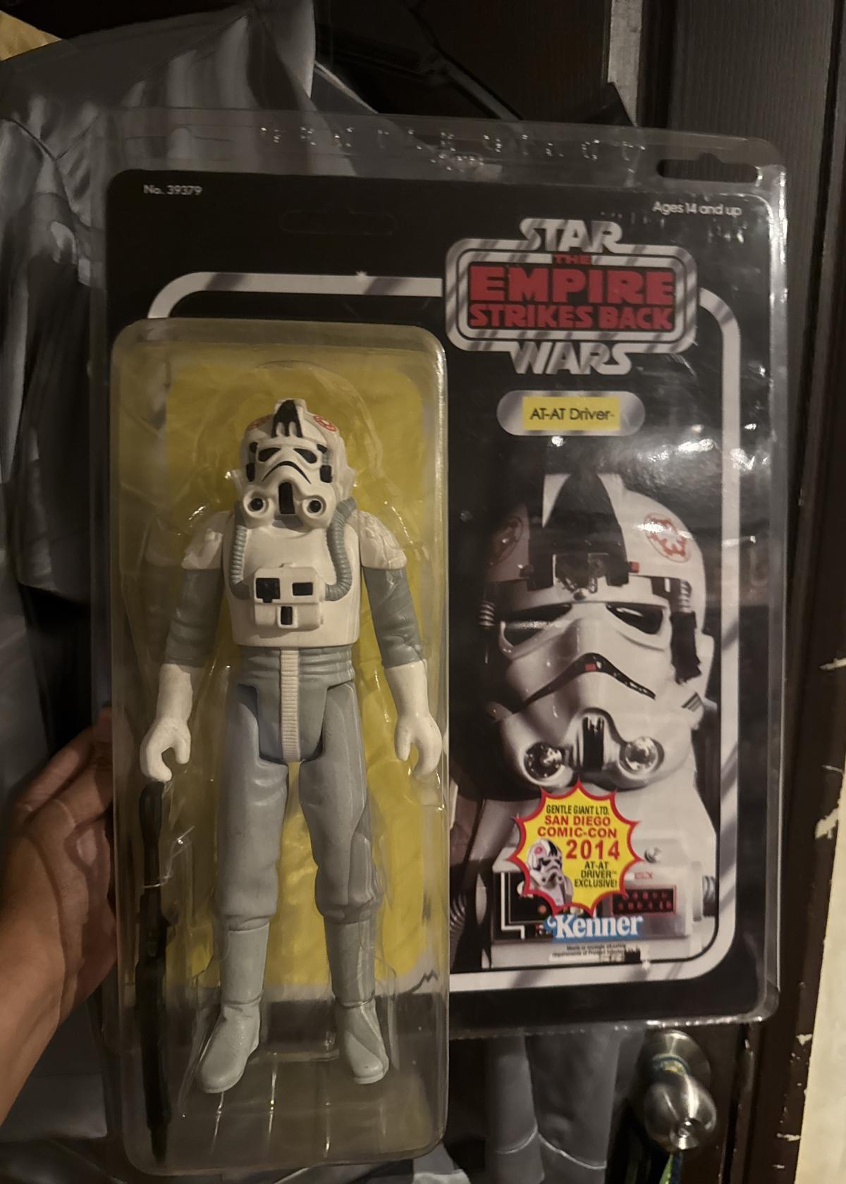 This collectible is a Gentle Giant Ltd. SDCC 2014 exclusive Jumbo Action Figure of the AT-AT Driver from Star Wars: The Empire Strikes Back. The figure replicates the iconic Kenner style from the original 1970s/80s Star Wars toy line, but in a jumbo 12-inch scale. Each figure is fully articulated, comes in a blister-pack on a vintage-inspired cardback with detailed retro graphics, and features an SDCC exclusive sticker. Very limited quantities were produced, making it highly desirable among Star Wars collectors, especially due to its nostalgia value, SDCC exclusivity, and faithful reproduction of classic Kenner design elements.