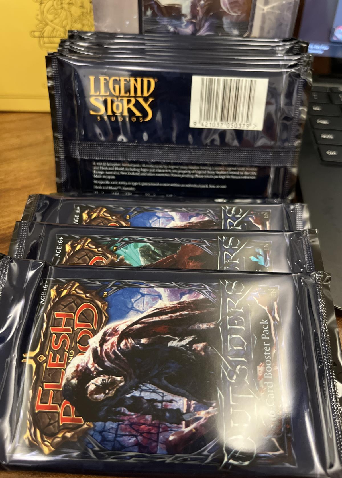 This listing features sealed booster packs from the Flesh and Blood Trading Card Game, Outsiders set. Produced by Legend Story Studios, these English language packs are designed for ages 16 and up. Perfect for collectors and players seeking to expand their deck with cards from the Outsiders set. Each pack includes a random assortment of cards.