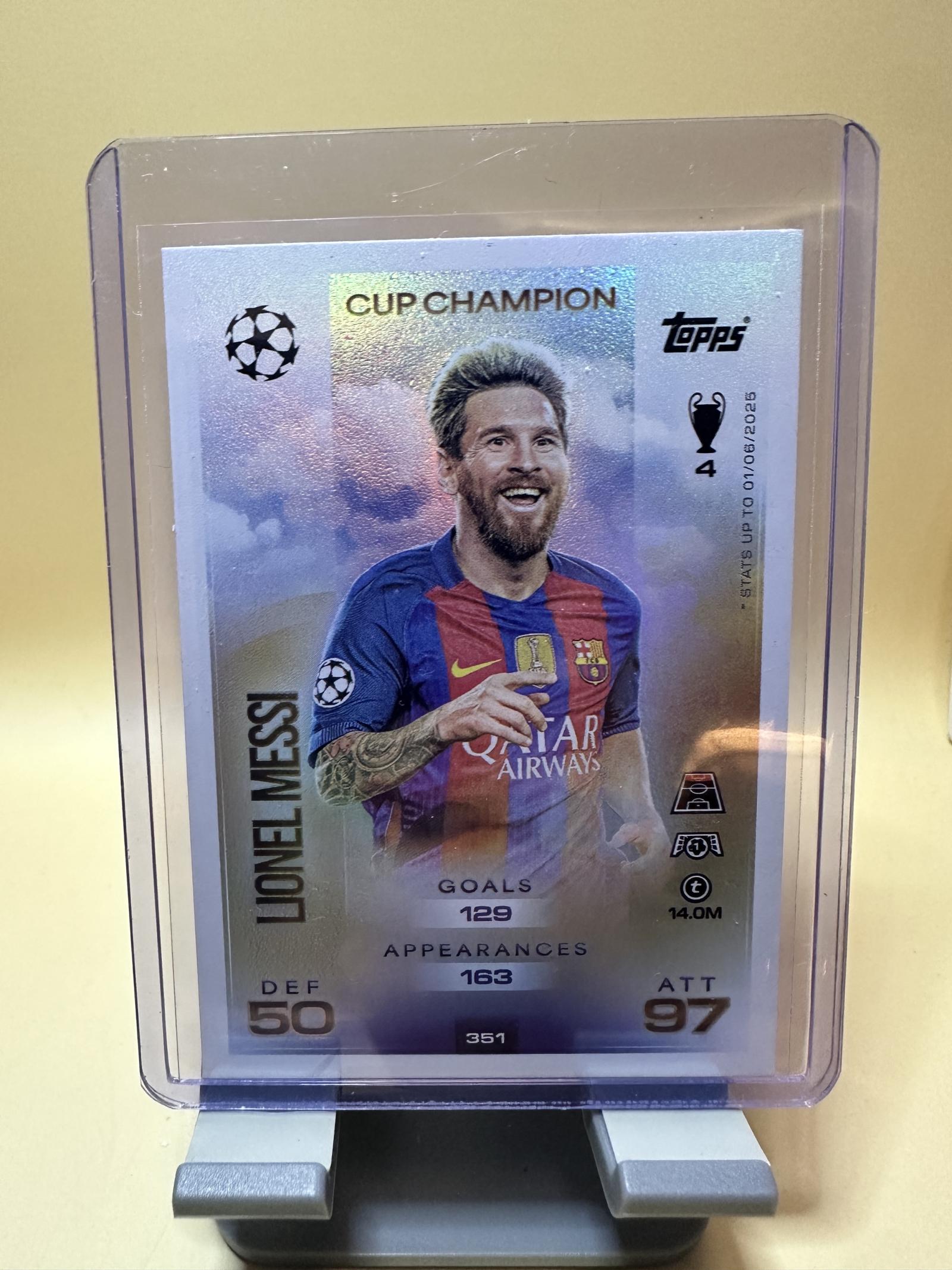Topps UEFA Champions League Lionel Messi Cup Champion Football Card #351