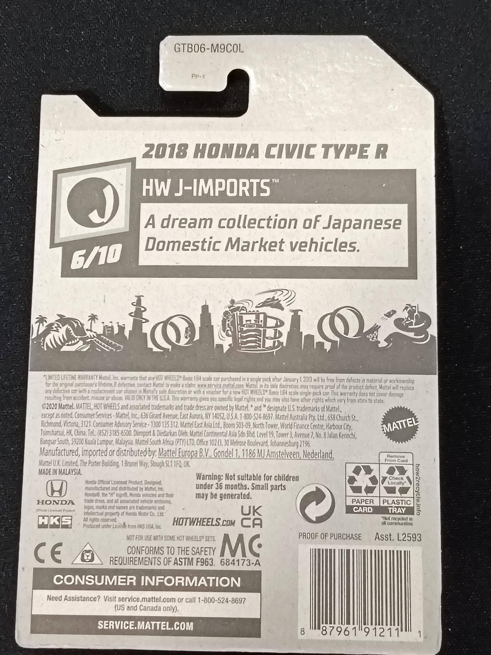 Hot Wheels 2018 Honda Civic Type R HW J-Imports US Card