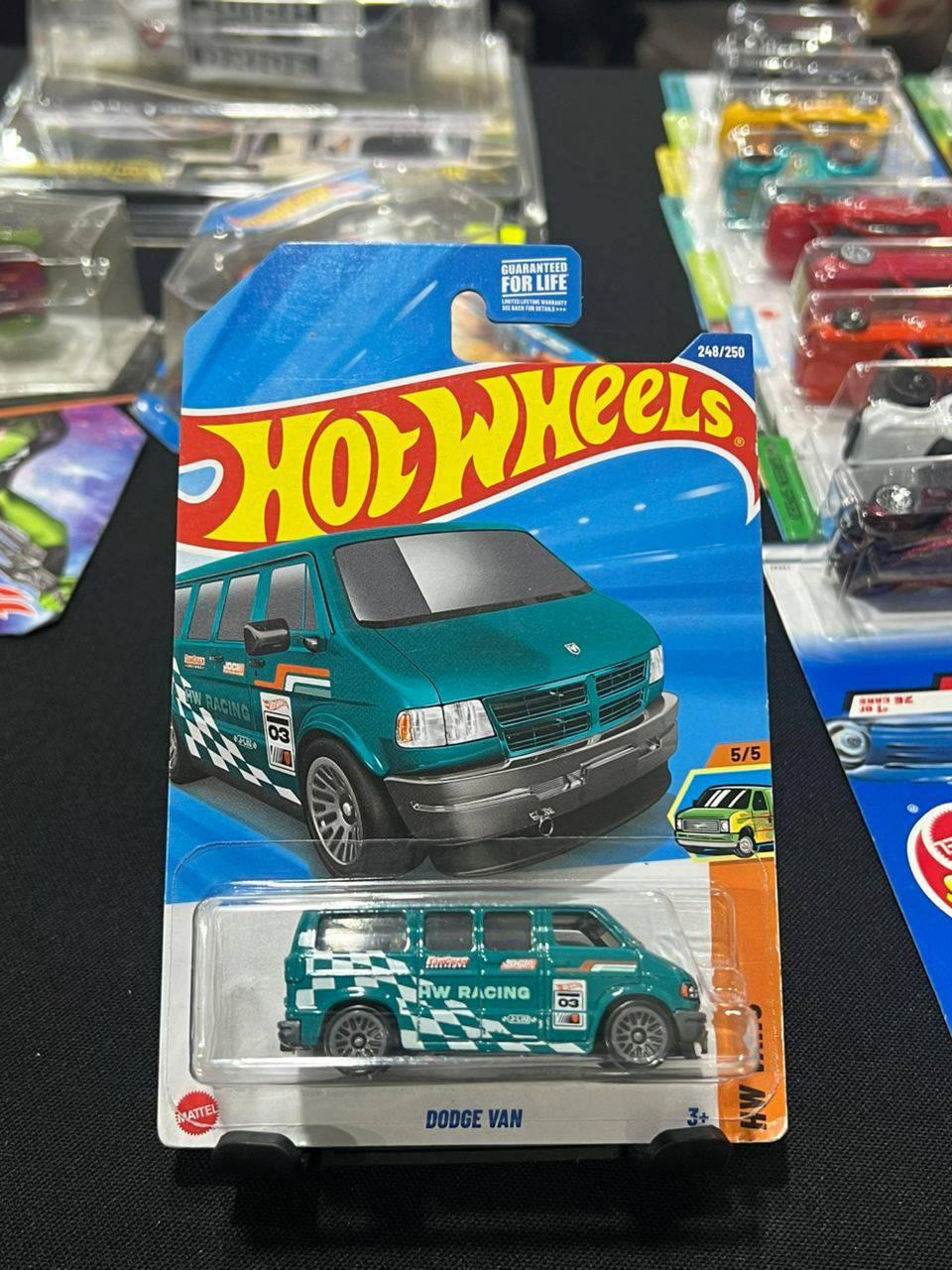 Limited edition Hot Wheels Dodge Van featuring TW Racing design in teal with checkered flag graphics. This is number 248 out of 250 in the collection series. The vehicle is new and sealed in original packaging, making it a perfect collectible for Hot Wheels enthusiasts.